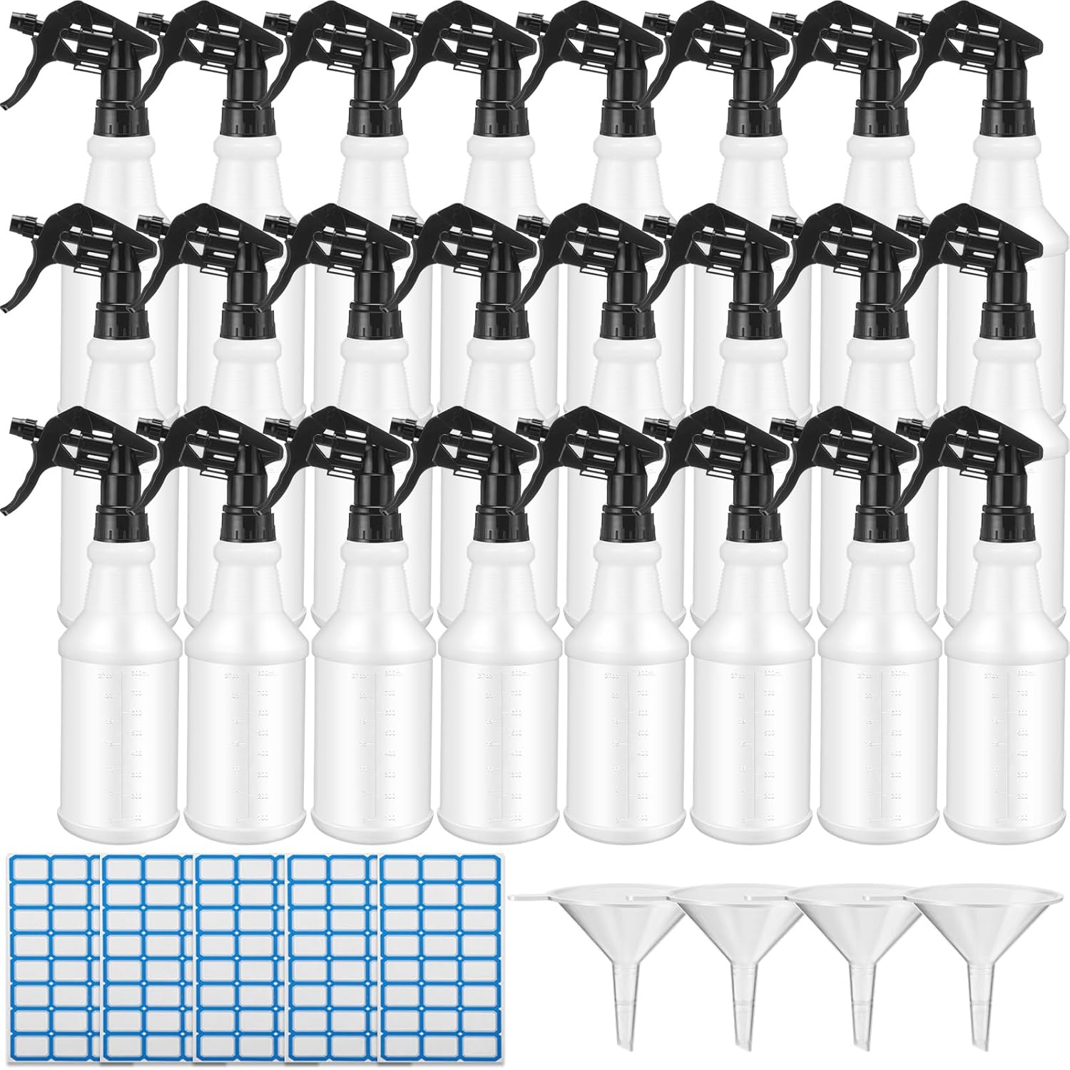 - Value Pack Spray Bottles Set: you will receive 24 pieces of 32 oz (1000ml) water spray bottles, 5 label stickers, and 4 plastic funnels, practical combination and rich content to meet your use and replacement needs, you can also share them with your friends or family