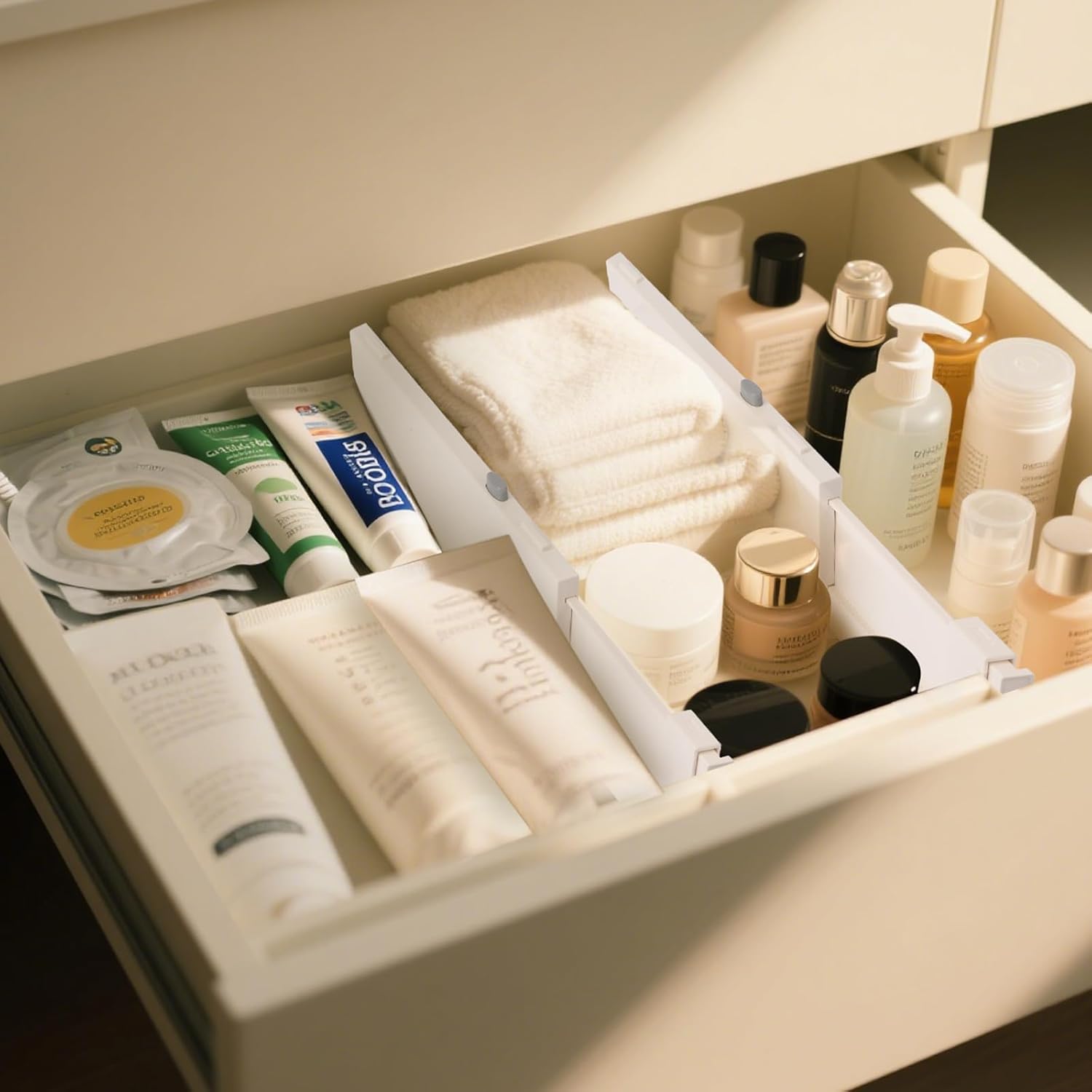- [Multipurpose]: This drawer divider is designed for any drawer of your house, kitchen and office, ideal for organizing clothes, baby clothes, underwear, socks, kitchen utensils, office supplies, makeup and bathroom essentials, keeping the items organized and visible, helps you find what you need instantly