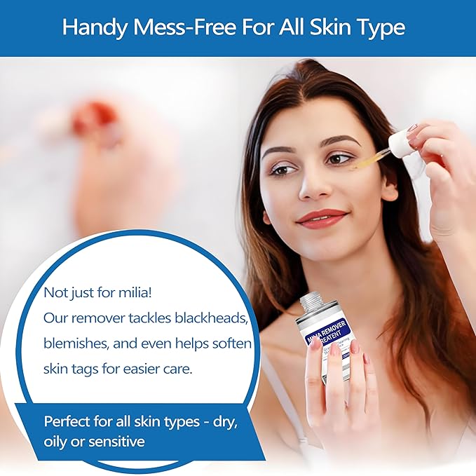 - Suitable for all skin types: Our product is not only suitable for Milia. It can remove blackheads, blemishes, and even help soften skin labels, making care easier. The facial essence can let the moisturizing cream further penetrate into the skin.