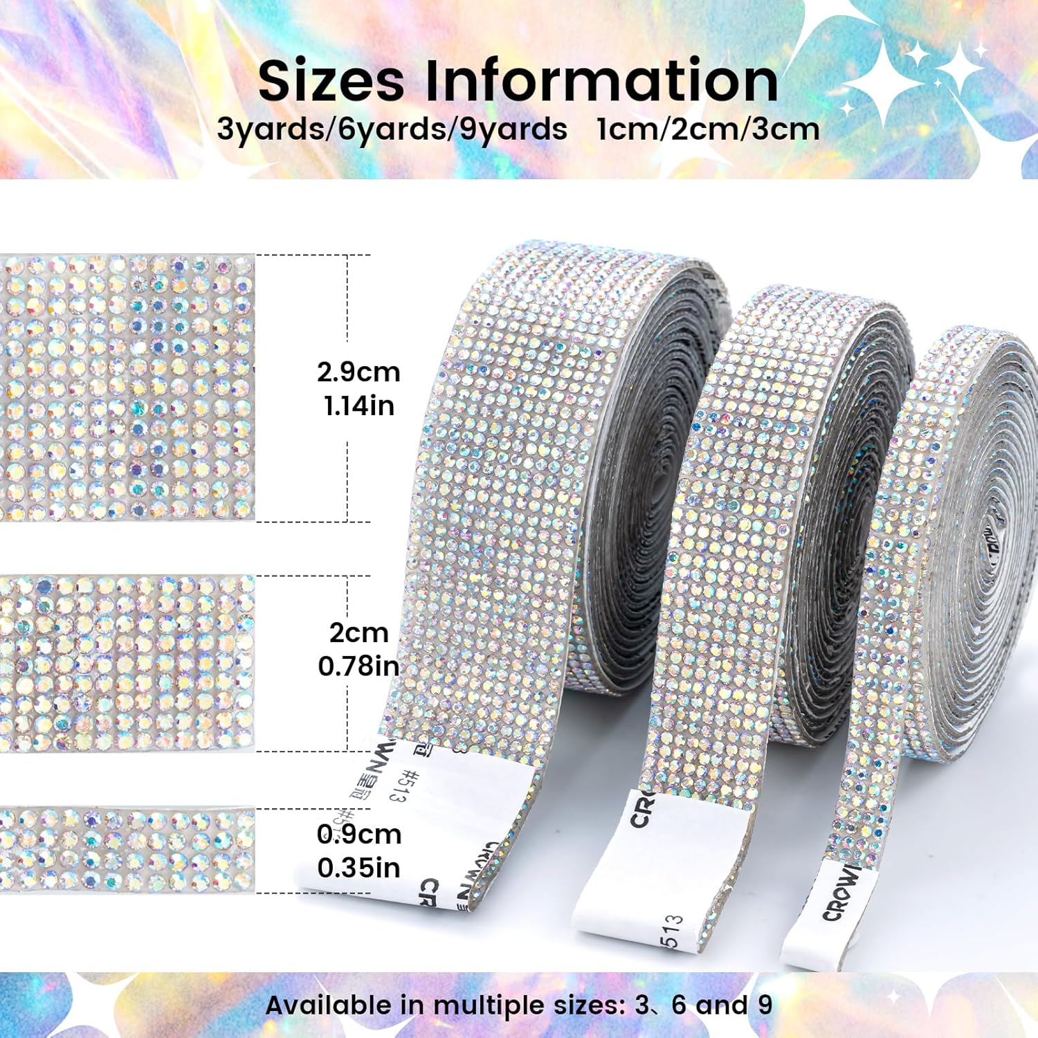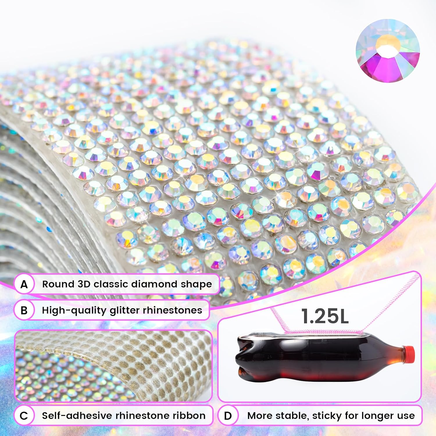 - Premium Quality and Strong Adhesion Rhinestones Ribbon: Made of high-quality glass rhinestones, the Self-adhesive backing ensures strong stickiness, stays firmly on any smooth surface without falling off, with high-temperature hot melt technology for durable, long-lasting sparkle.