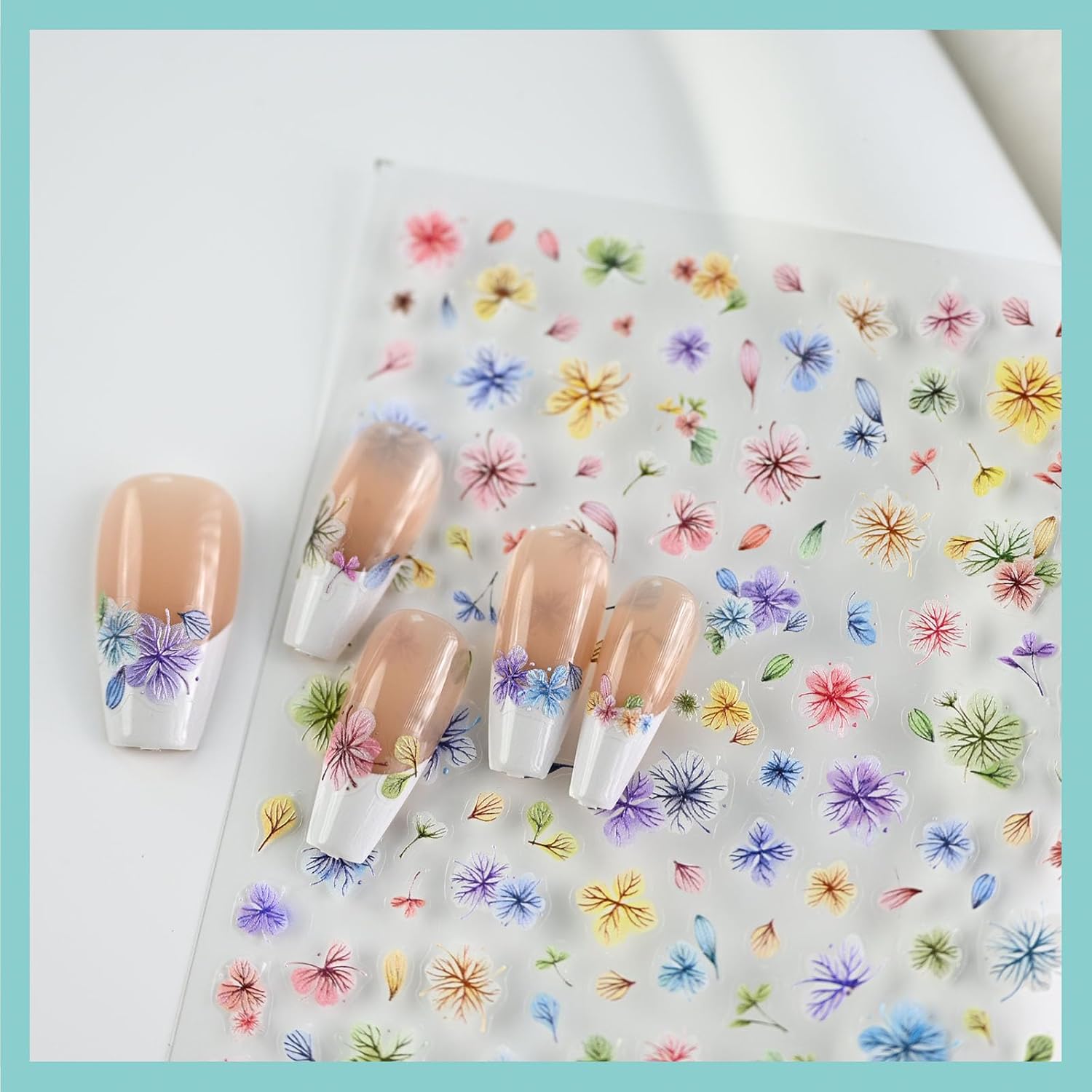 Floral Petal Nail Art Stickers, Embossed Flower Nail Decals, Self-Adhesive, Summer Spring Accessories for Women, Nail Decorations