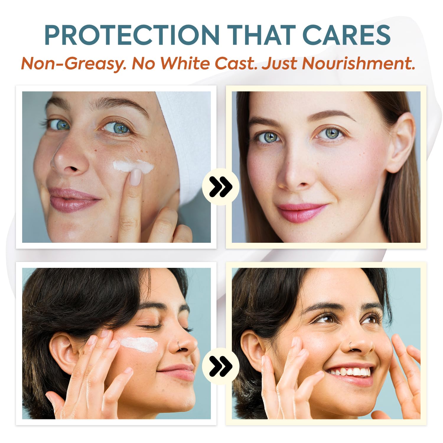 - Non-Greasy, No White Cast, Sheer Finish: Smooth, creamy texture blends easily without clogging pores, leaving your skin feeling nourished and breathable—not oily or sticky.