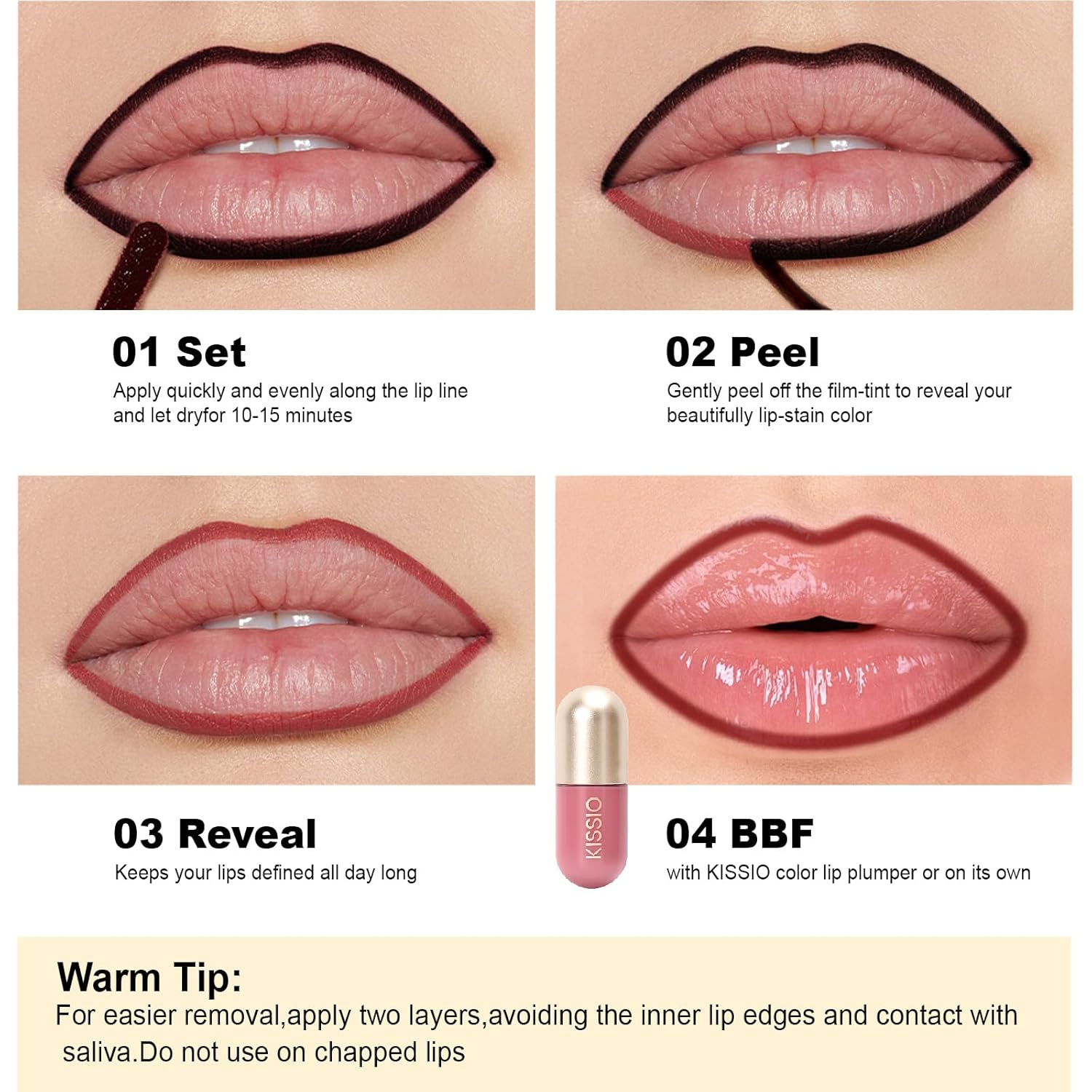 KISSIO Lip Liner Stain,Peel Off Lip Liner,Transfer Proof,Long Lasting and Waterproof,Lips Tint Tattoo,Natural Makeup Stain,Matte Finish,Coral red