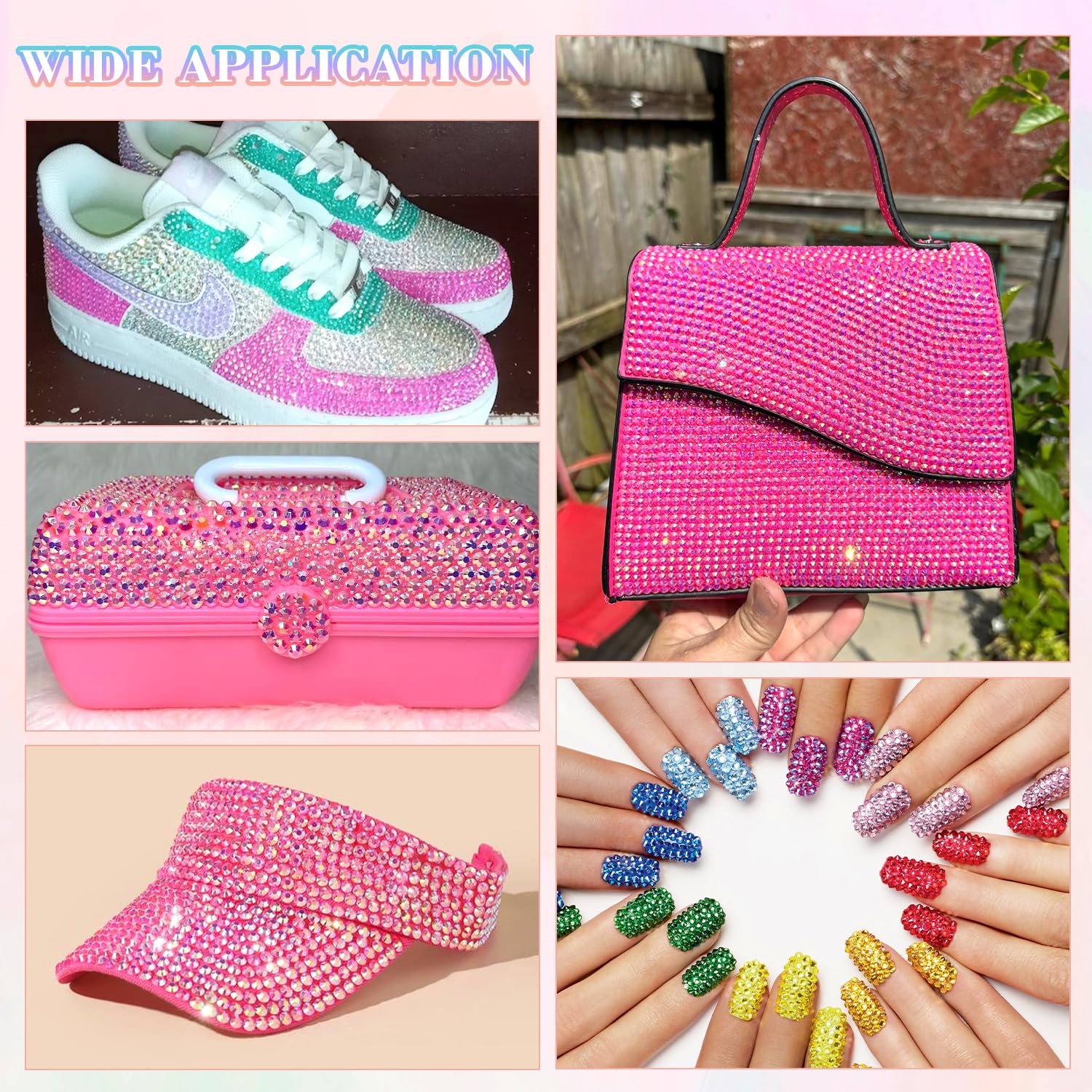 - WIDE APPLICATION -- These sparkling iridescent jelly rhinestones are perfect for creating dazzling looks. Use them for bedazzling crafts like shoes, tumblers, mugs, bottles, phonecases, bags, glasses, hats, masks, clothing, clothes or nail art and more