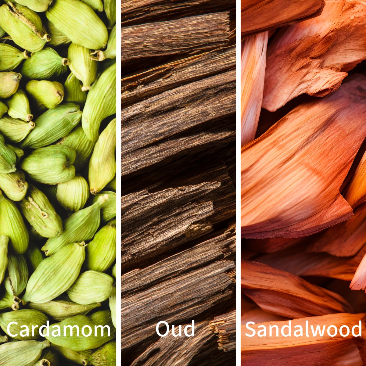 - FRAGRANCE NOTES - Top: Cardamom, Vetiver | Middle: Sandalwood, Tonka Bean | Base: Oud, Vanilla, Amber