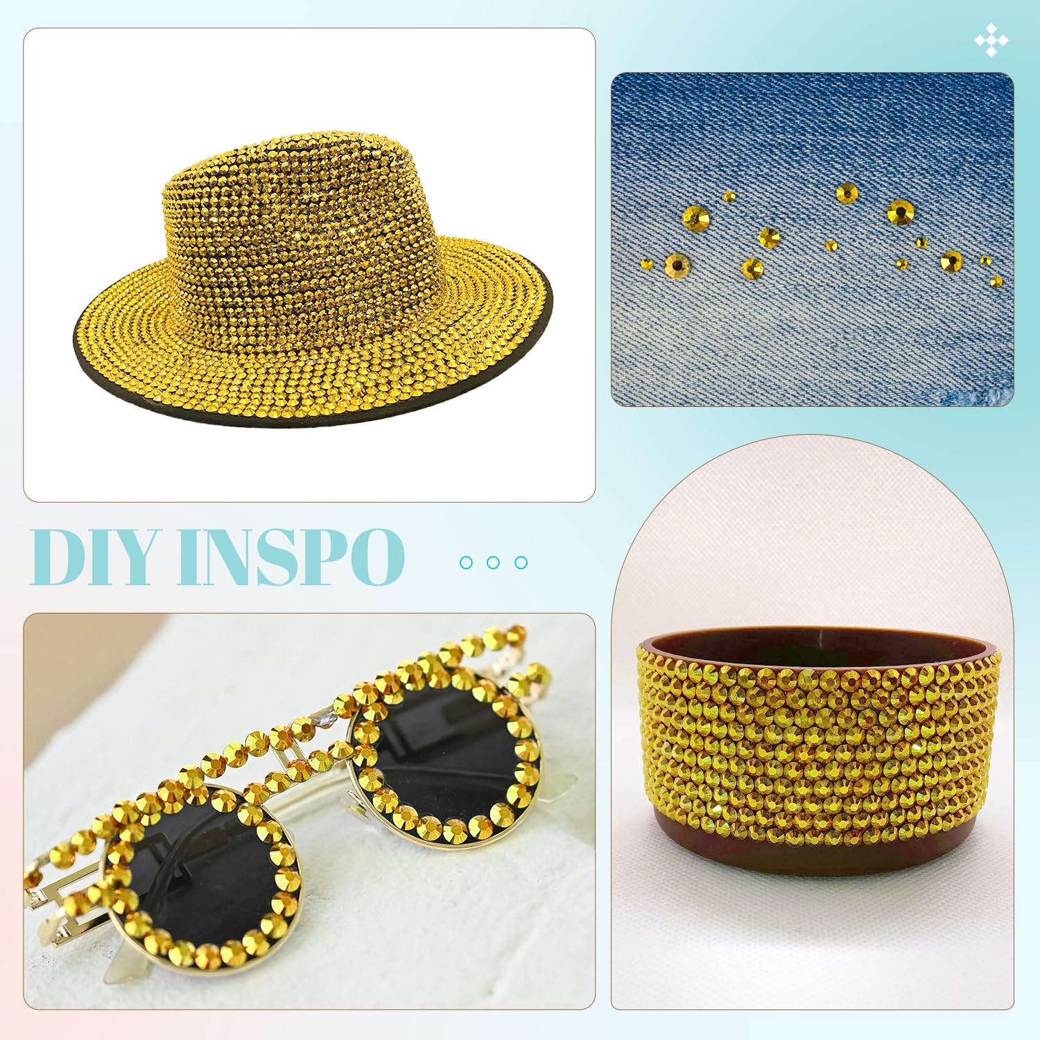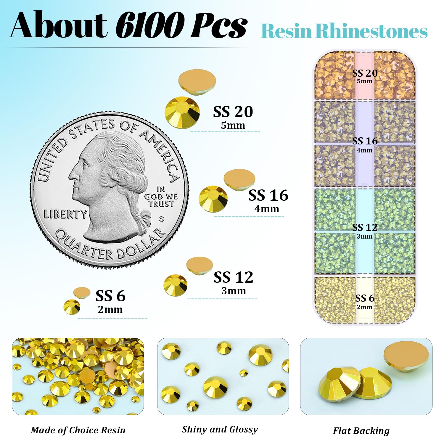 6100Pcs Resin Rhinestones for Crafting with 2Pcs 10ml B7000 Jewelry Glue, 1 Box Flatback Crystals Diamond (Bright Gold) for Bedazzling Crafts DIY Nail Art,Non Hotfix Gems for Clothing Shoes Tumblers