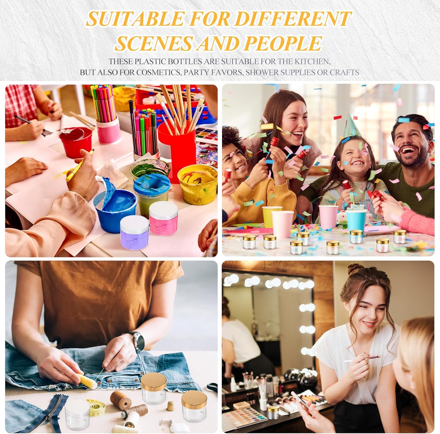 - Multi-functional Container: good way to store your homemade cosmetic, body lotion, moisturizers, face masks, specimen collection, putty, lotions, fragrances, DIY, party favors, or other crafts, good tools in daily life