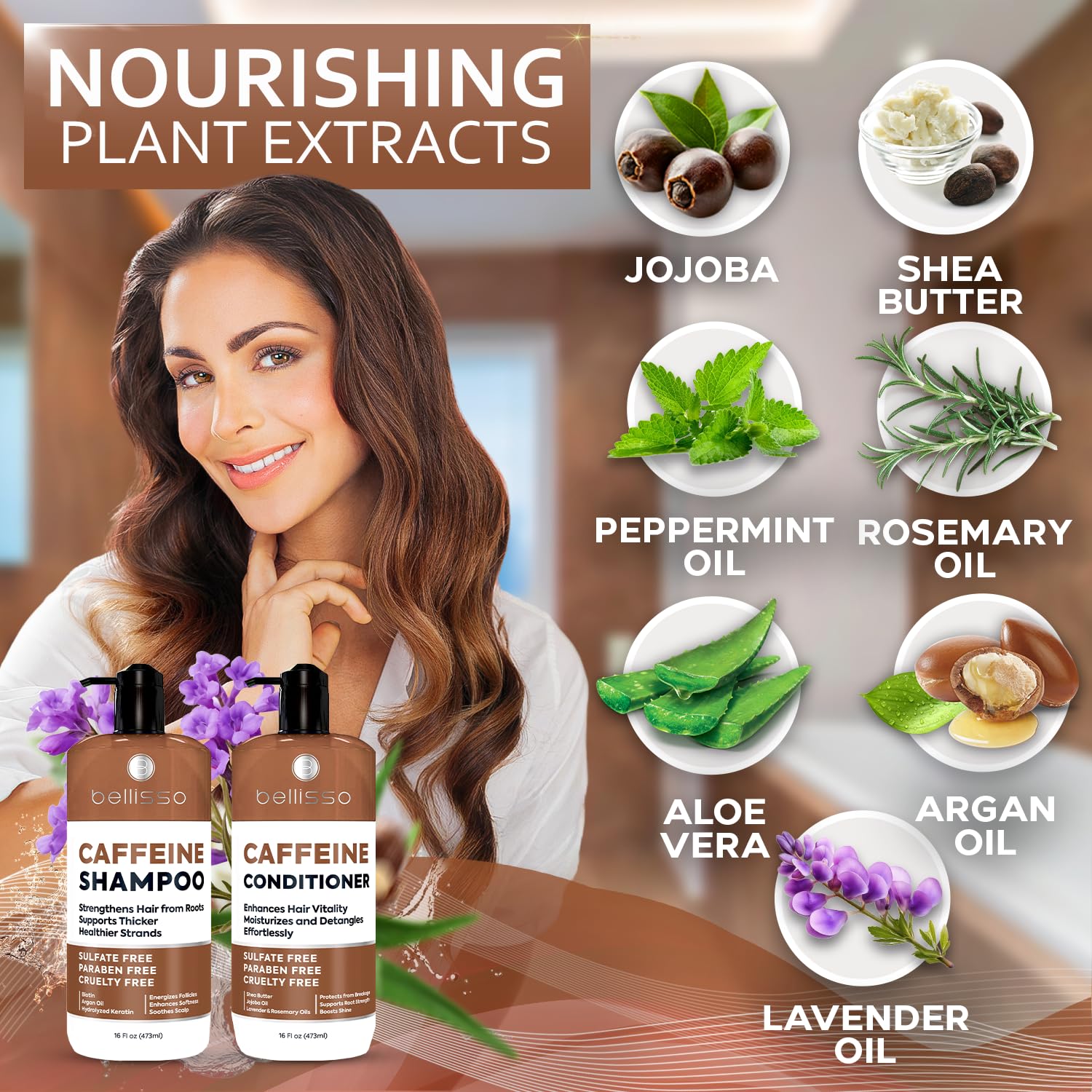 - SULFATE FREE: Bellisso’s conditioner and shampoo with caffeine is sulfate free, paraben free, and never tested on animals, making it a smarter choice for conscious hair care. Designed to be gentle yet effective, our conditioner and shampoo for fine hair strengthens strands without harsh additives. A premium thickening shampoo and conditioner set that’s even safe to use on color treated hair.