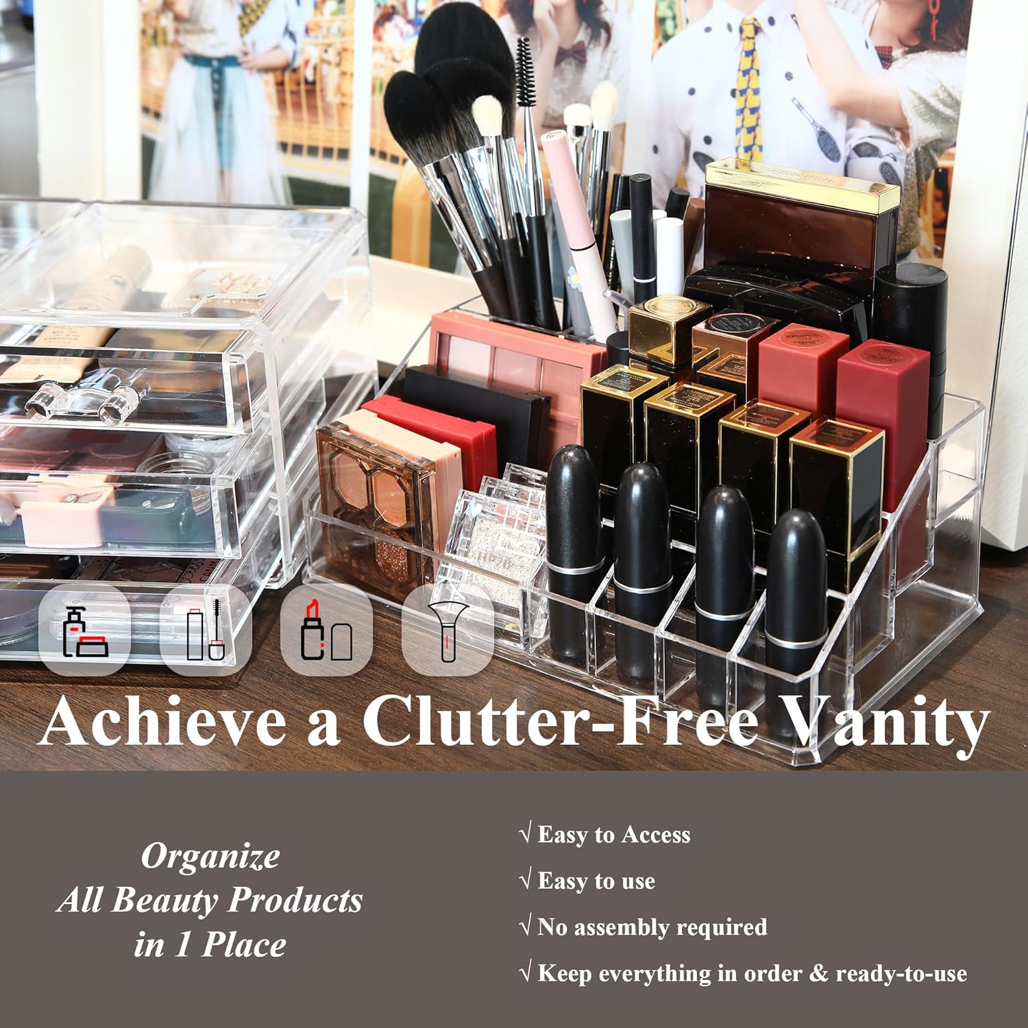 - ORGANIZE YOUR BEAUTY PRODUCTS - Achieve a clutter-free vanity with this makeup organizer. Keep your cosmetics and accessories in one place and save time getting ready. Assembly is not required, making it even easier to use