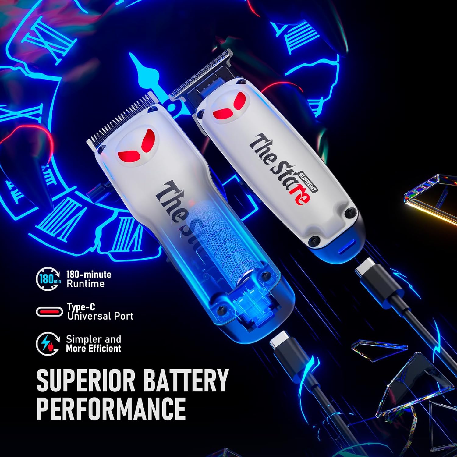 - 【Long-Lasting Power barber clippers set】 The USB-C rechargeable mens hair clippers offer 3 hours cordless operation - perfect for home barbering. The Stare will use different colors to tell you its power status in an eye-catching way, making these reliable clippers for men who value uninterrupted grooming.