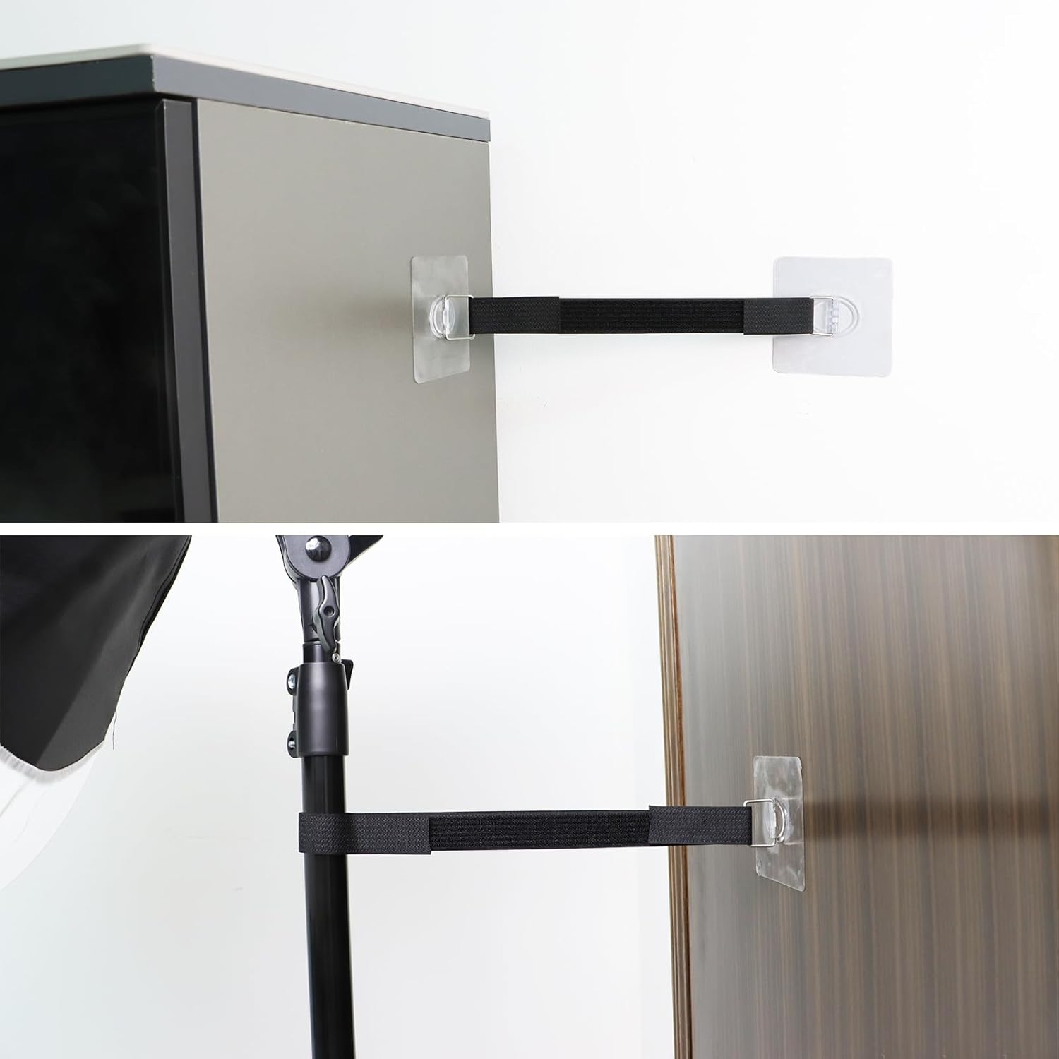 10 Pack Cut to Length TV Safety Straps for Flat Screen, No-Drill Adjustable Anti-Tip Earthquake Straps for TV and Furniture,Including 1in*32ft Hook and Loop Straps with 20 Adhesive Anchors