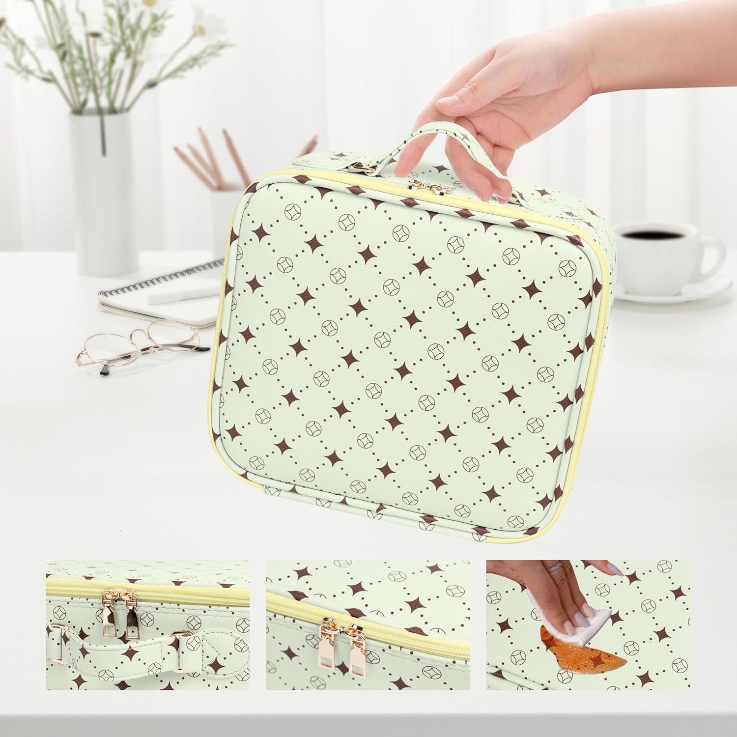 - ADJUSTABLE DIVIDERS: The inner layer of the cosmetic case is designed with adjustable dividers, you can flexibly adjust the position of the dividers according to the size and shape of different cosmetics. This not only keeps your cosmetics organized, but also maximizes the use of case space.