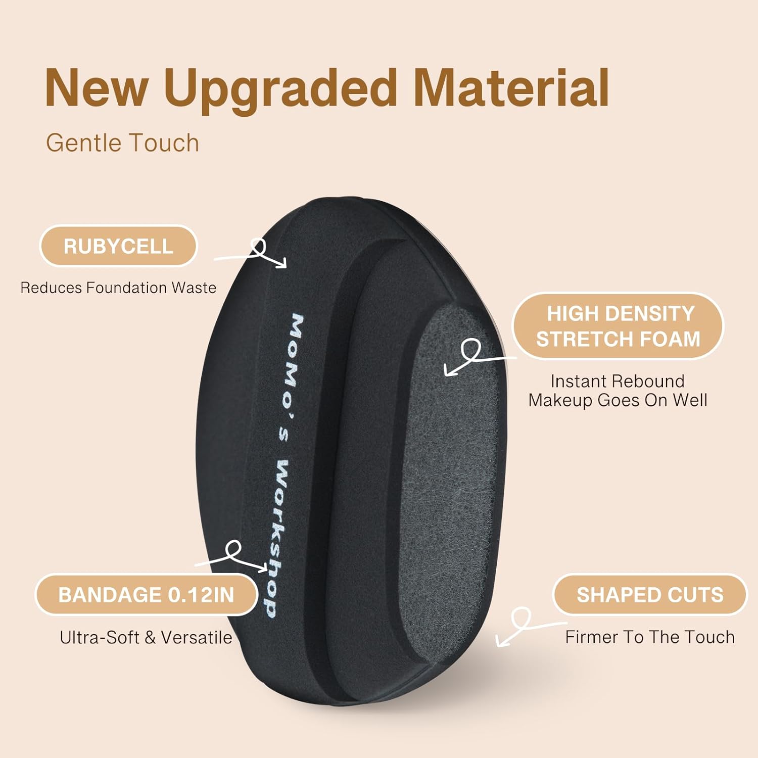- 【3mm Integrated Strap】TATAMI Black Makeup Puff's Rubycell bandage enhances grip and control to prevent slipping. Three fingers can be inserted for application.