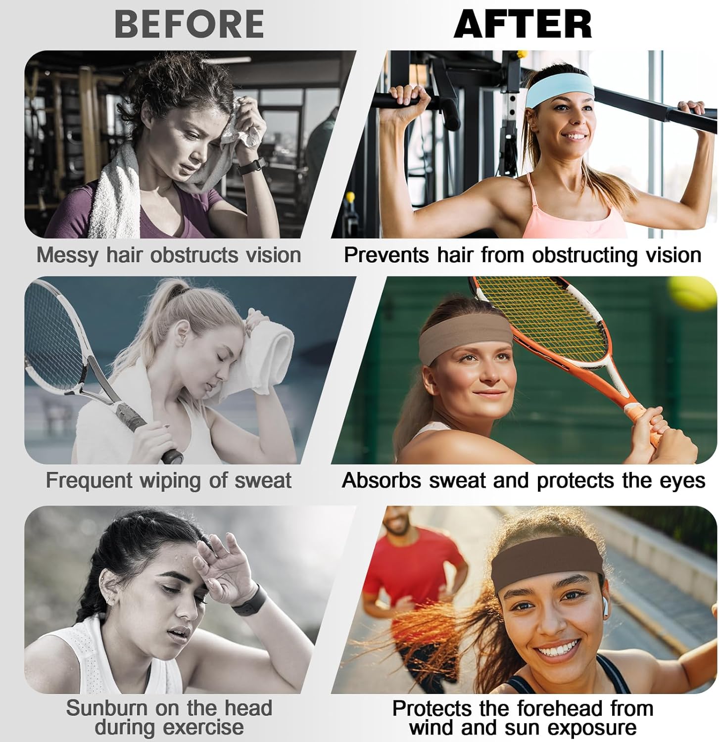 - 【Sweat-Wicking & Non-Slip】This sweat headband keeps you dry and comfortable, even during your toughest workouts. Made from soft, breathable fabric, it locks in place so you don’t have to fuss with adjustments—just focus on crushing your workout!Plus, it shields your forehead from wind and sun while keeping hair neatly in place. No more distractions, just all-day comfort and performance.
