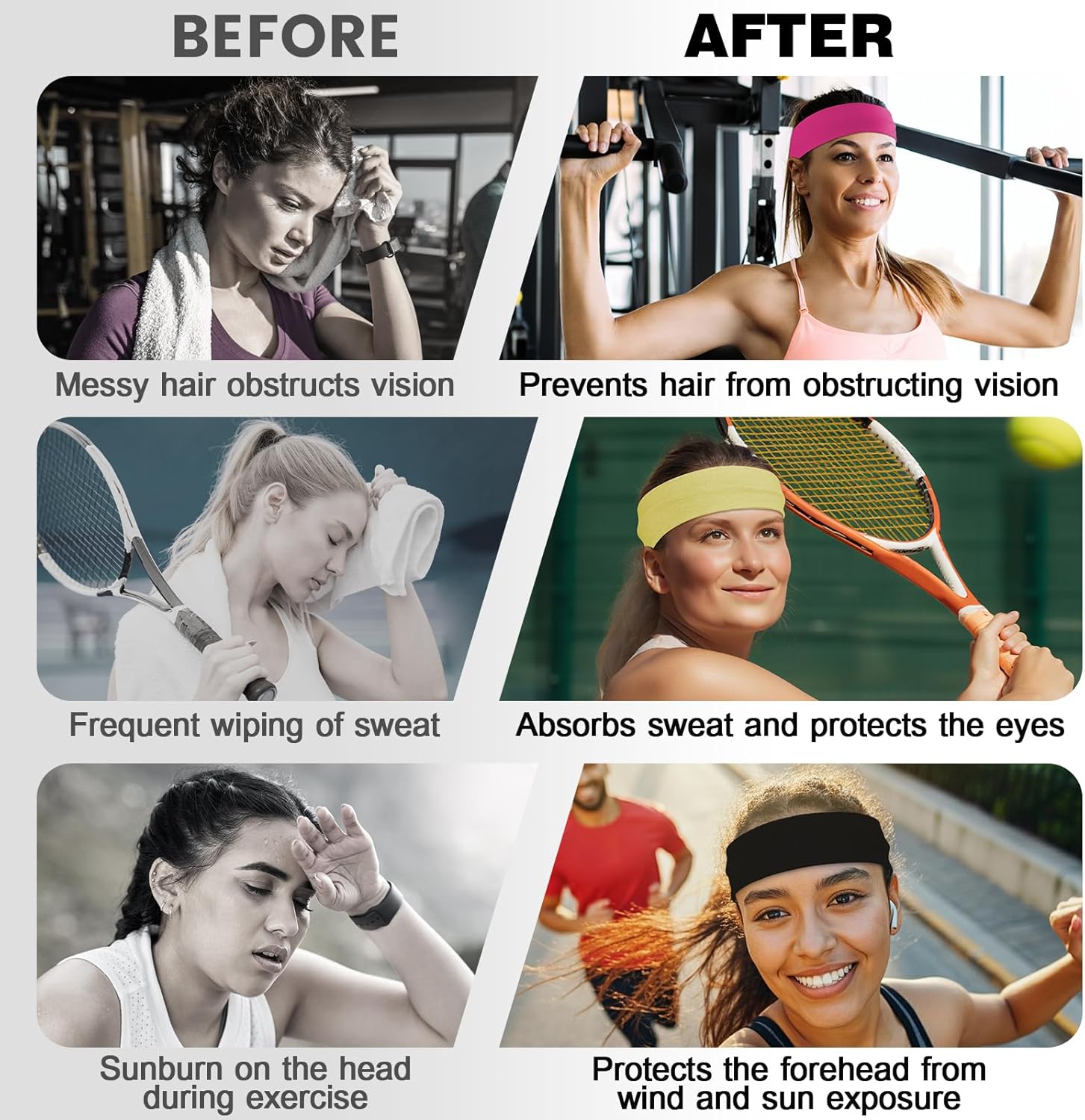 - 【Sweat-Wicking & Non-Slip】This sweat headband keeps you dry and comfortable, even during your toughest workouts. Made from soft, breathable fabric, it locks in place so you don’t have to fuss with adjustments—just focus on crushing your workout!Plus, it shields your forehead from wind and sun while keeping hair neatly in place. No more distractions, just all-day comfort and performance.
