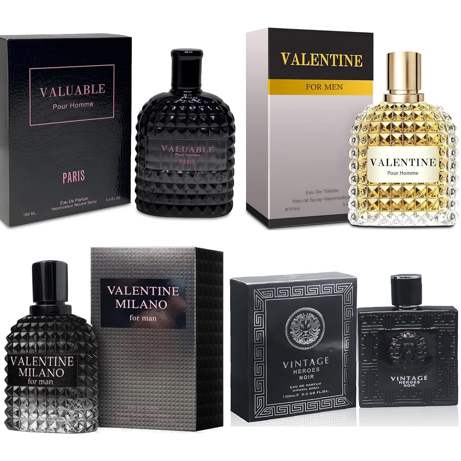 Men's Cologne Gift Set Include Valentine Milano,Valentine,Vintage Heroes Noir & Valuable Paris - 3.4 Fl Oz Each | Vanilla Bourbon, Leather & Amber Floral Fragrance Eau de Toilette Perfume