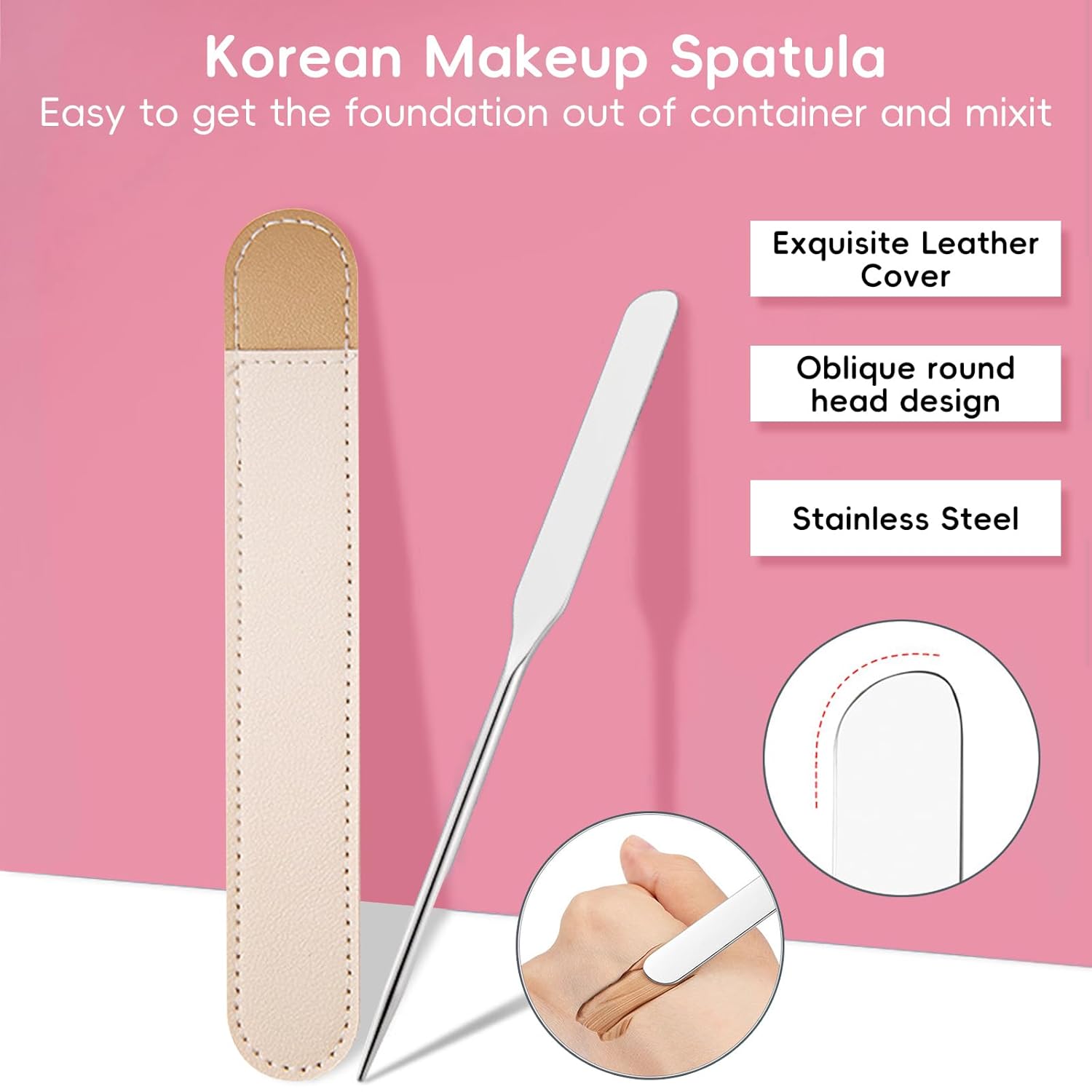 - ★【DURABLE MATERIAL】:The foundation mixing tray made of thickened stainless steel with smooth texture, friction-resistant, non-cracking, easy to clean and wipe off. The Korean foundation spatula is made of high-quality stainless steel, flat head design for easy to get out of foundation from container or mix foundation, eye shadow lipstick nail polish, etc