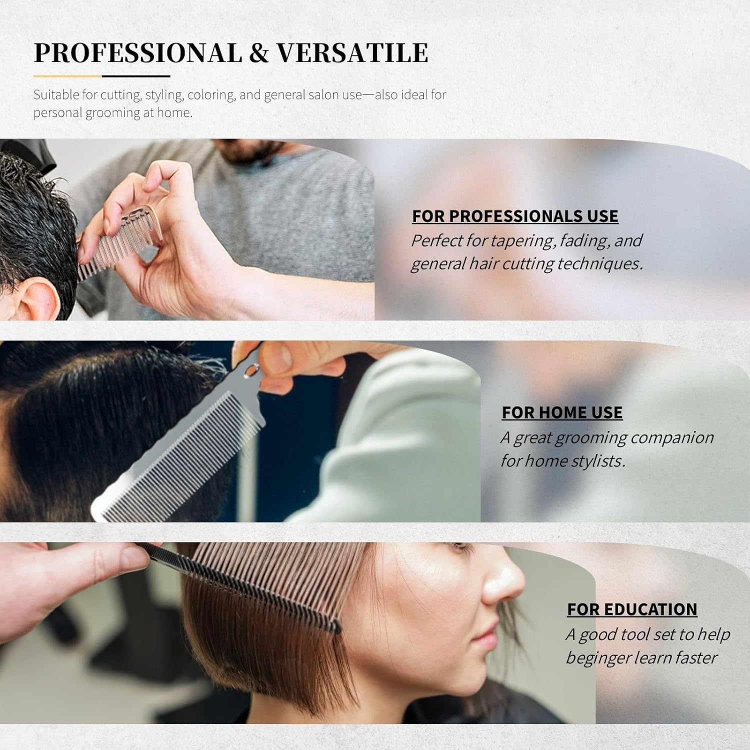 - WIDE APPLICATION: These styling combs are suitable for your daily use, comfortable to use, they can be applied in barber hair salons for hair cutting, styling or dyeing.