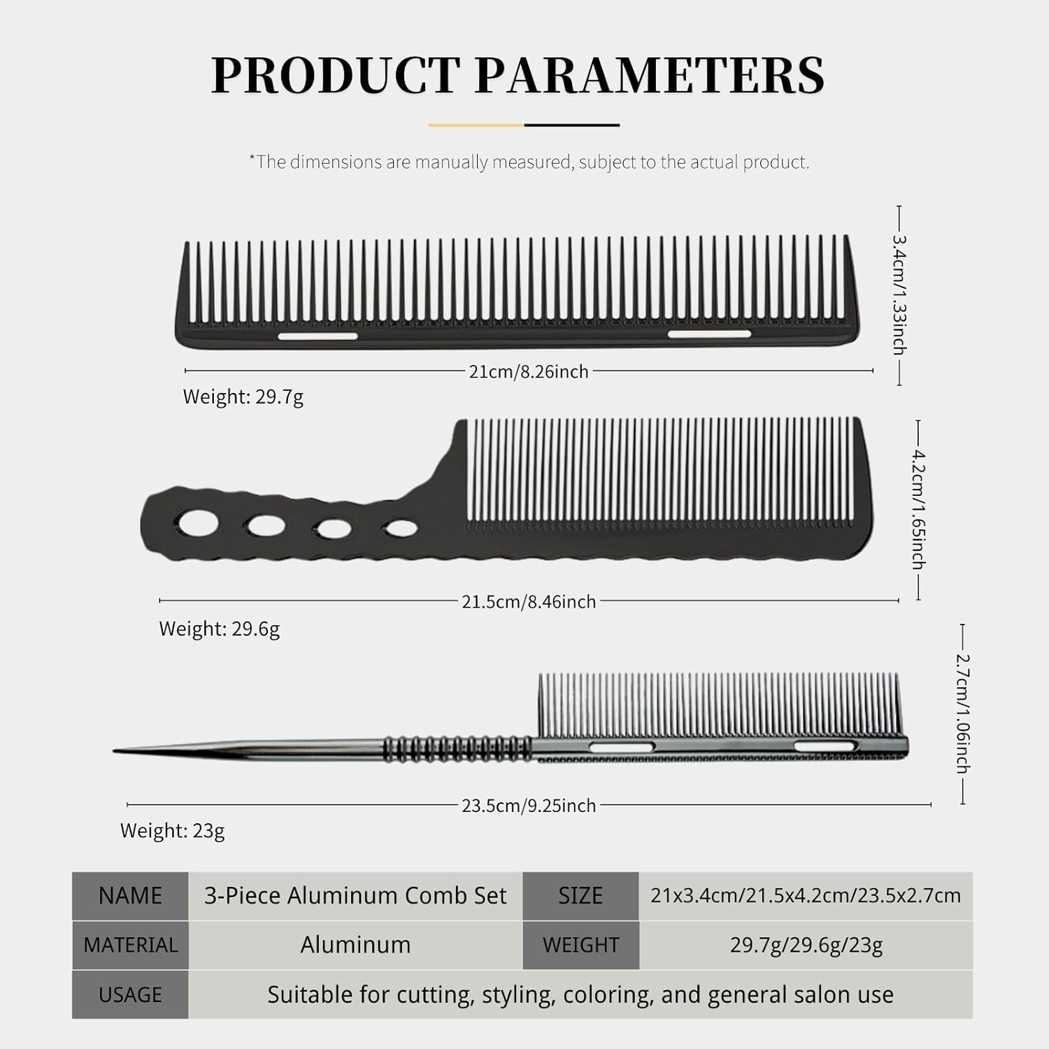 - COMPLETE COMB KIT: 3 types of metal hair combs in total, hair cutting comb, handle comb and a rat tail comb. Suitable for hair of different lengths and styles, which are practical and can meet your different needs.