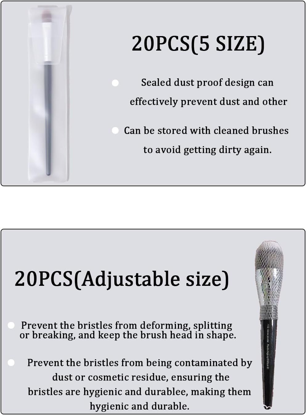 - 【40 Piece Set】 You will receive 20 cosmetic makeup brushes protector with 5 different sizes and 20 brush protector net, offering complete protection for all your brushes, a must-have for makeup lovers.