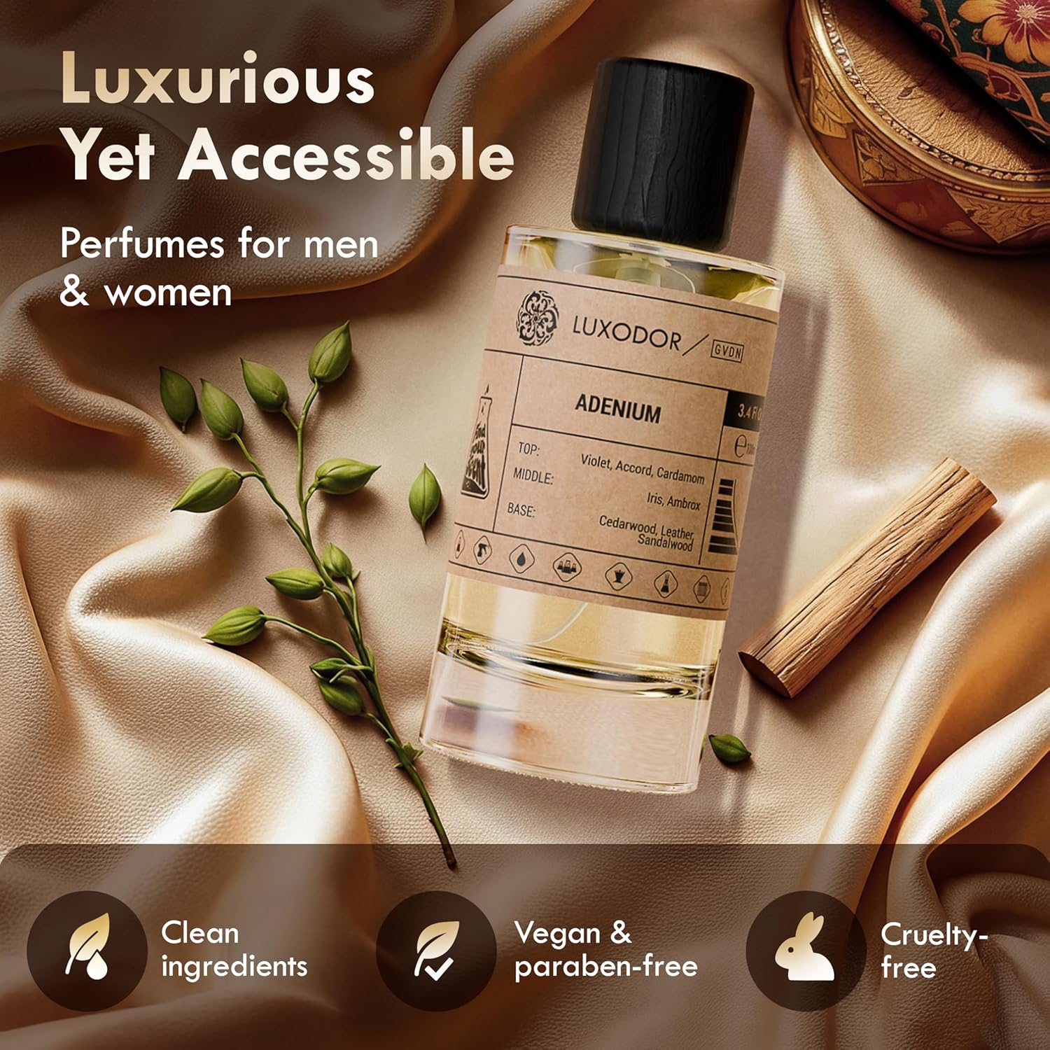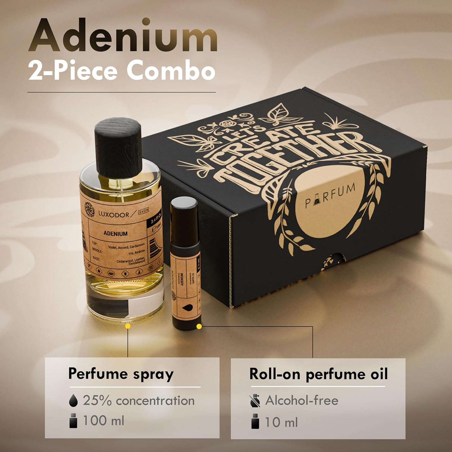 - Adenium by Luxodor captures the bold and captivating essence of this iconic scent. Experience the character of a designer perfume with the effortless appeal of a solid perfume. More than just a scent. it’s a best selling perfume made to stand out.