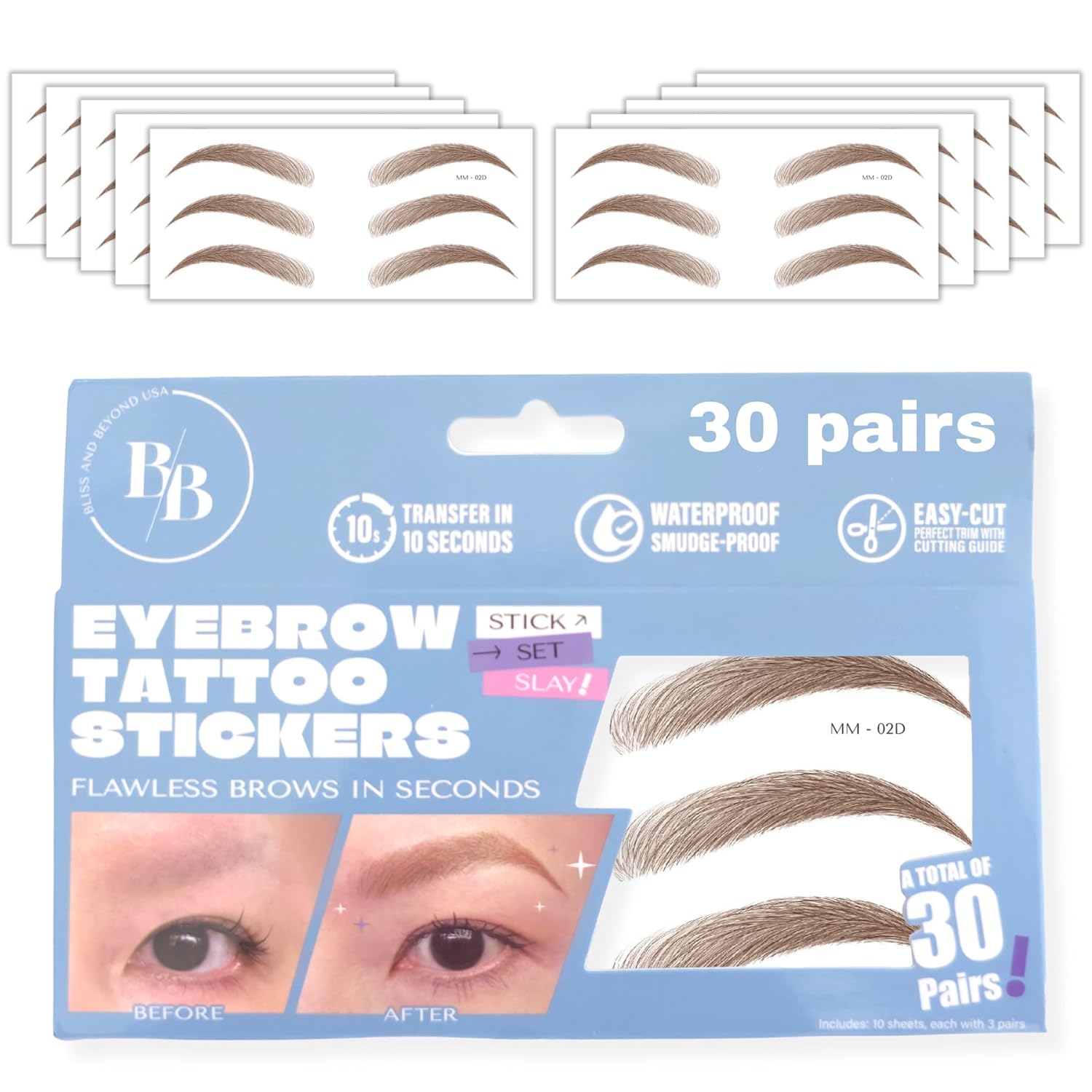 - Trim Guide on Back: Each sticker has a printed guideline on the back to help you cut evenly and match your brow shape.