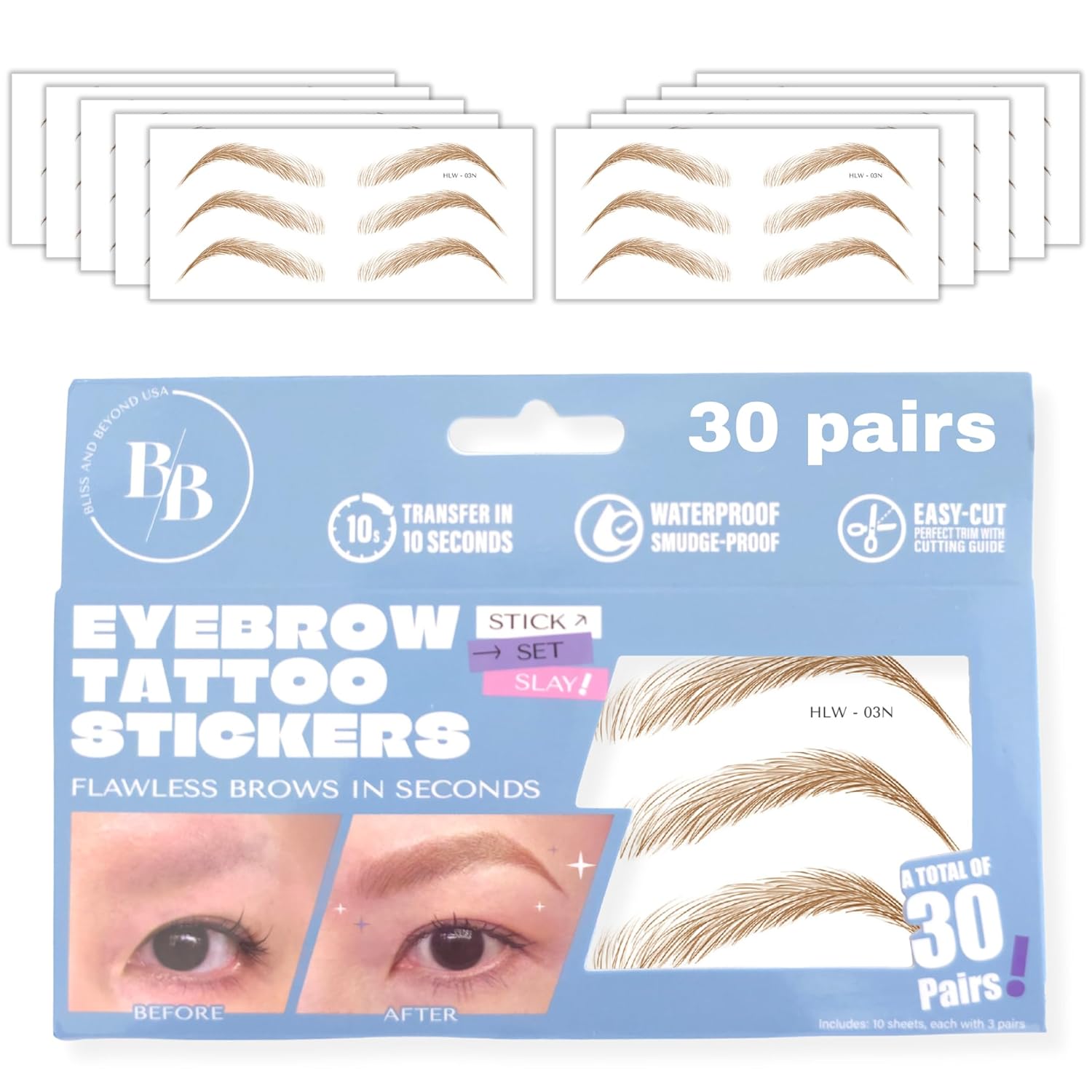 - Trim Guide on Back: Each sticker has a printed guideline on the back to help you cut evenly and match your brow shape.