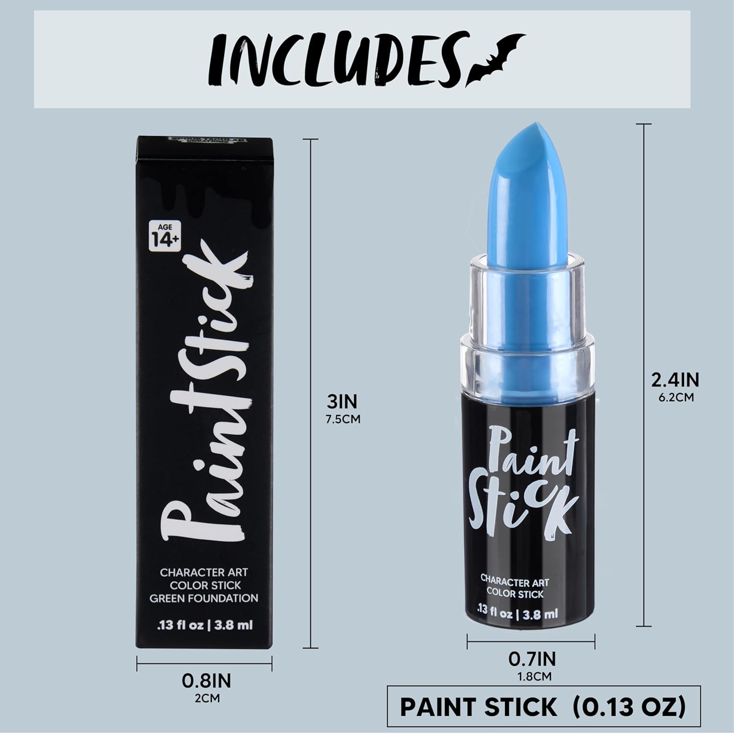 - Product Size: The blue stick face body paint measures approximately 2.91 inches in overall height and has a capacity of 3.8g. Its compact size ensures easy storage and portability, making it an ideal choice for Halloween events and parties.The compact size makes it travel-friendly and perfect for on-the-go touch-ups.