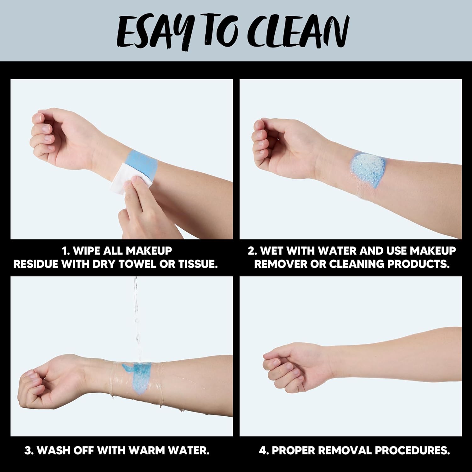 - Versatile Usage for Every Spooky Scene:Use for blue face makeup (think frostbitten zombies, alien skin), costume makeup accents, or decorating props. Washes off easily with soap, yet stays put during parties!