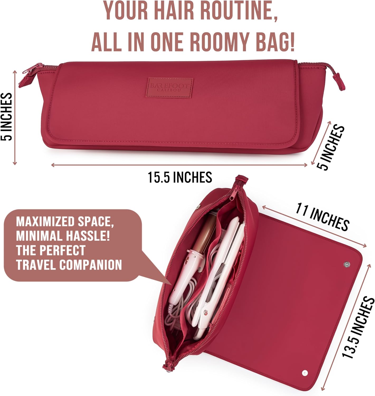 BAREFOOT CARIBOU Hair Tools Travel Bag and Heat Resistant Mat for Flat Irons, Straighteners, Curling Iron, and Haircare Accessories, 2-in-1 design, with Interior Pockets, Portable Organizer