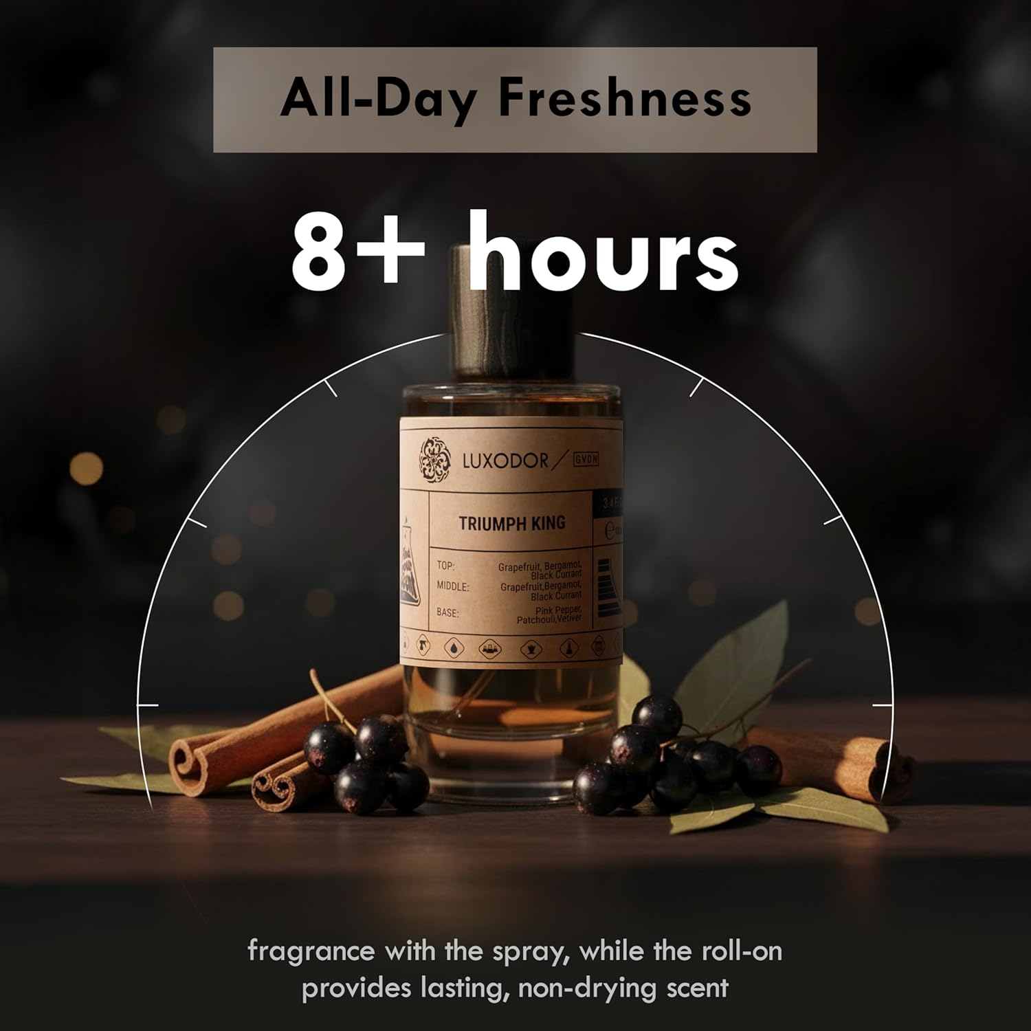 - LONG LASTING & PERFECTLY CRAFTED POWERFUL AROMA: Triumph King is a long lasting perfume that delivers perfect scents, offering a potent and memorable fragrances experience with exceptional staying power.