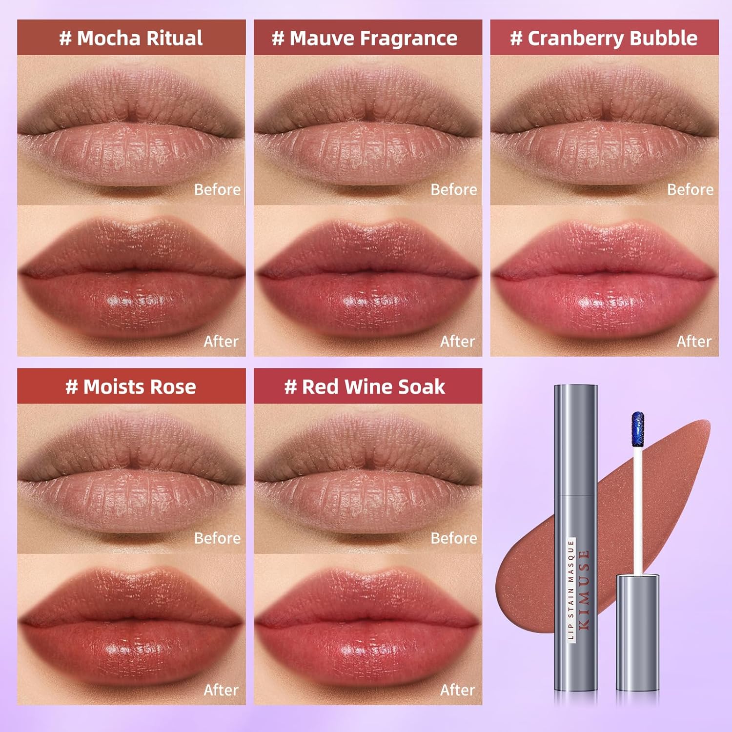 KIMUSE Lip Stain Masque: Peel Off Lip Stain Long Lasting Waterproof 12HR Transfer Proof & Hydrating Tint, Instant Lip Color With Natural Matte Effects, Vegan & Easy To Use