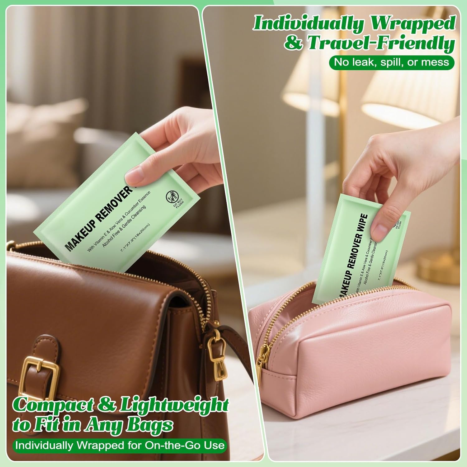 - INDIVIDUAL PACKET: Each travel makeup wipe is sealed to prevent drying out, ensuring a fresh and moist wipe for makeup removal and facial cleansing; easy to carry to work, travel and gym