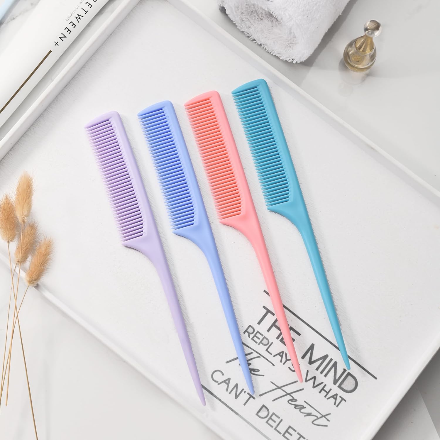 4 Pcs Rattail Combs for Women -Fine Tooth Styling Comb with Ergonomic Handle, Anti-Static Heat-Resistant Professional Hair Parting Tools for Smooth Detangling, Updos & Salon-Perfect Hairstyles.