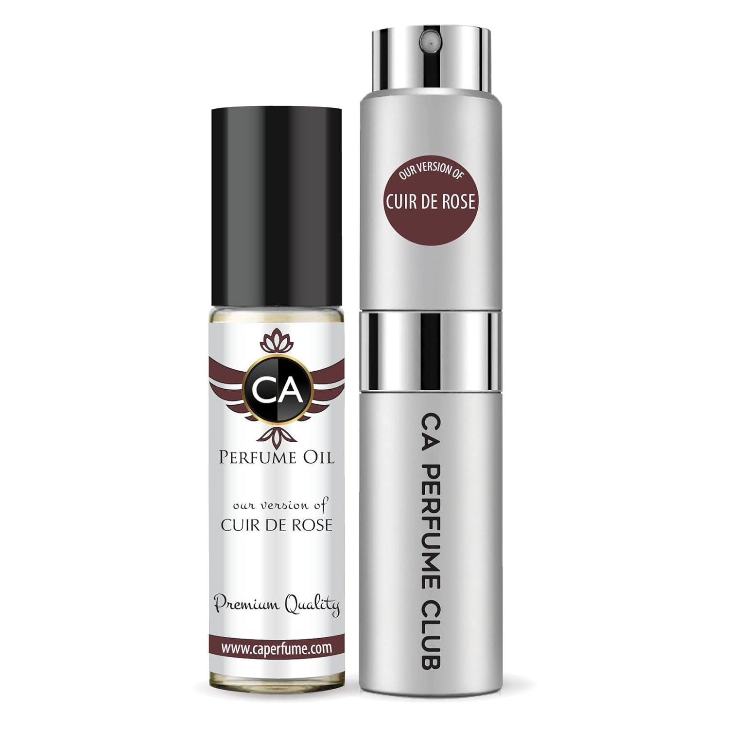 CA Perfume Duo Impression of Cuir de Rose For Women And Men Perfume Layering Set Long Lasting Travel Size EDP + Body Oil Roll-On Bottle 0.27 Fl Oz+0.33 Fl Oz