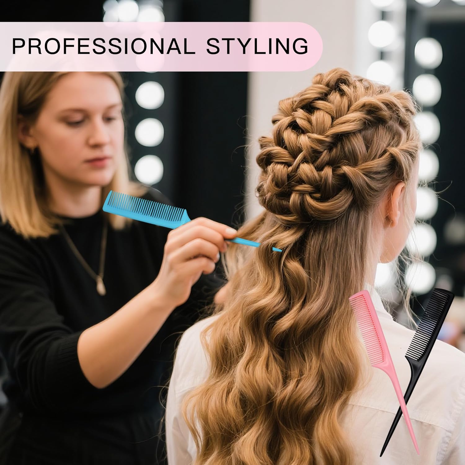 4 Pcs Rattail Combs for Women -Fine Tooth Styling Comb with Ergonomic Handle, Anti-Static Heat-Resistant Professional Hair Parting Tools for Smooth Detangling, Updos & Salon-Perfect Hairstyles.