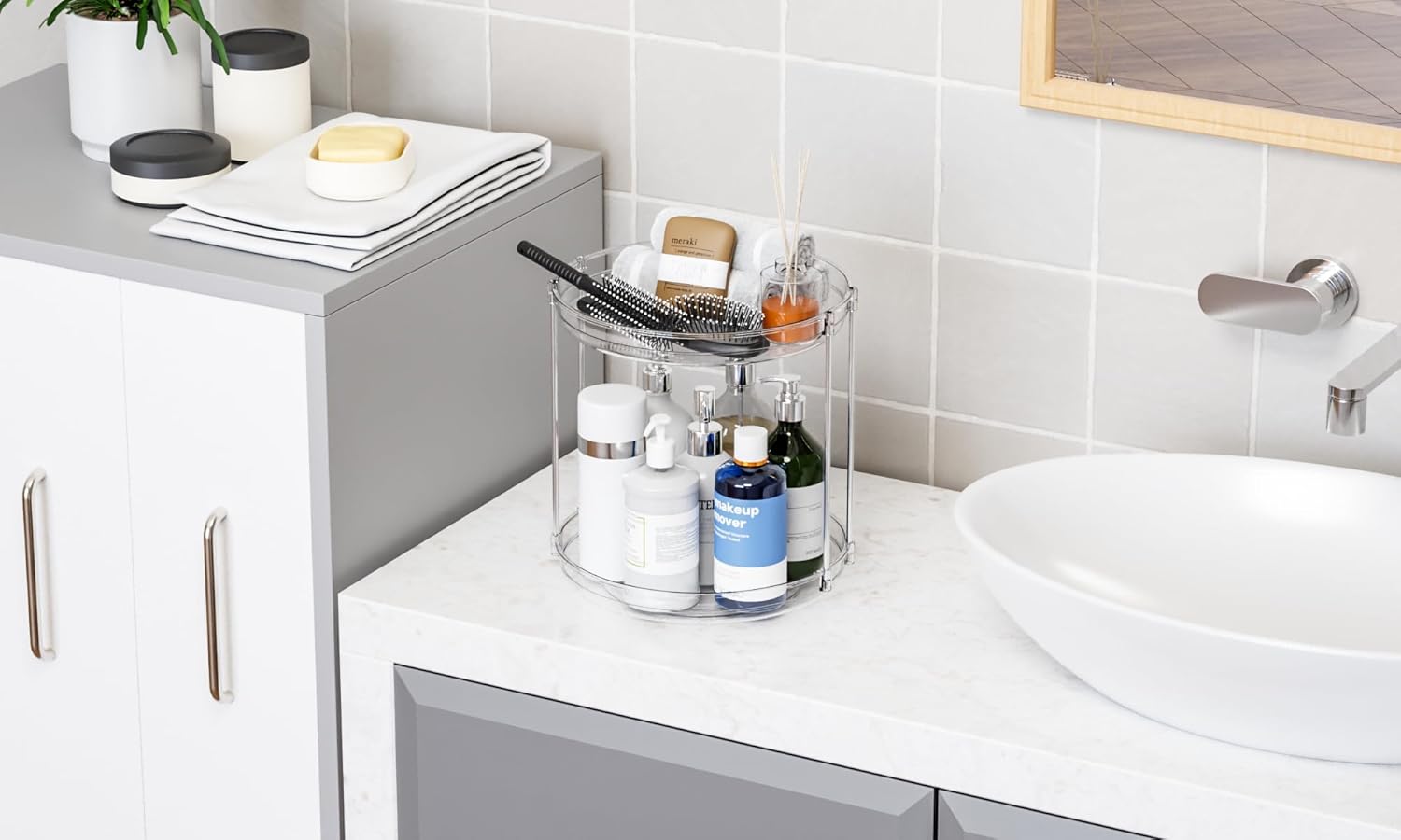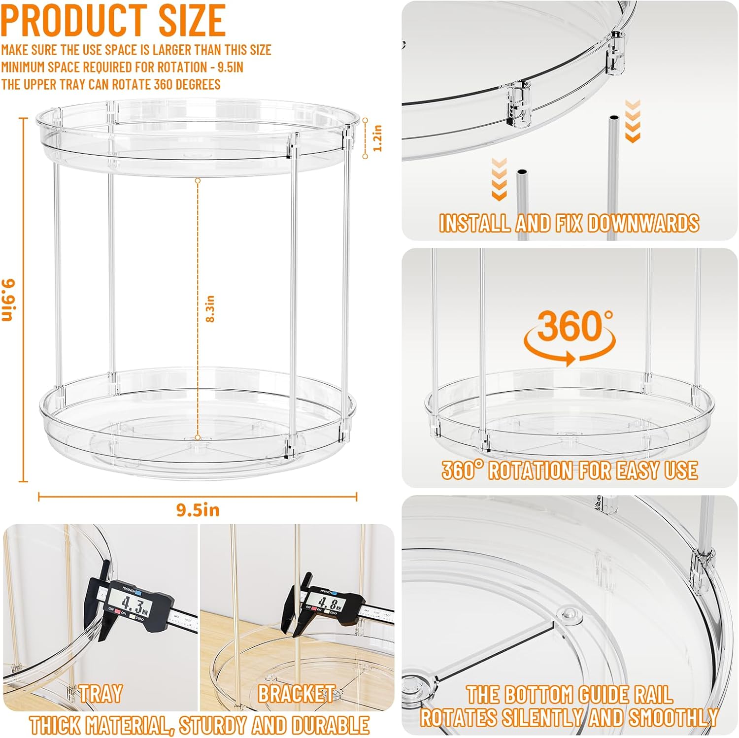 - 【2-Layer Large Capacity/Easy To Install】 The Bathroom Lazy Susan Organizer is designed with simplicity and convenience in mind,Simply insert the metal pillar and complete assembly in 30 seconds, allowing you to enjoy effortless organization right away,The skincare organizers boasts a large capacity make up organizers and storage with the added convenience