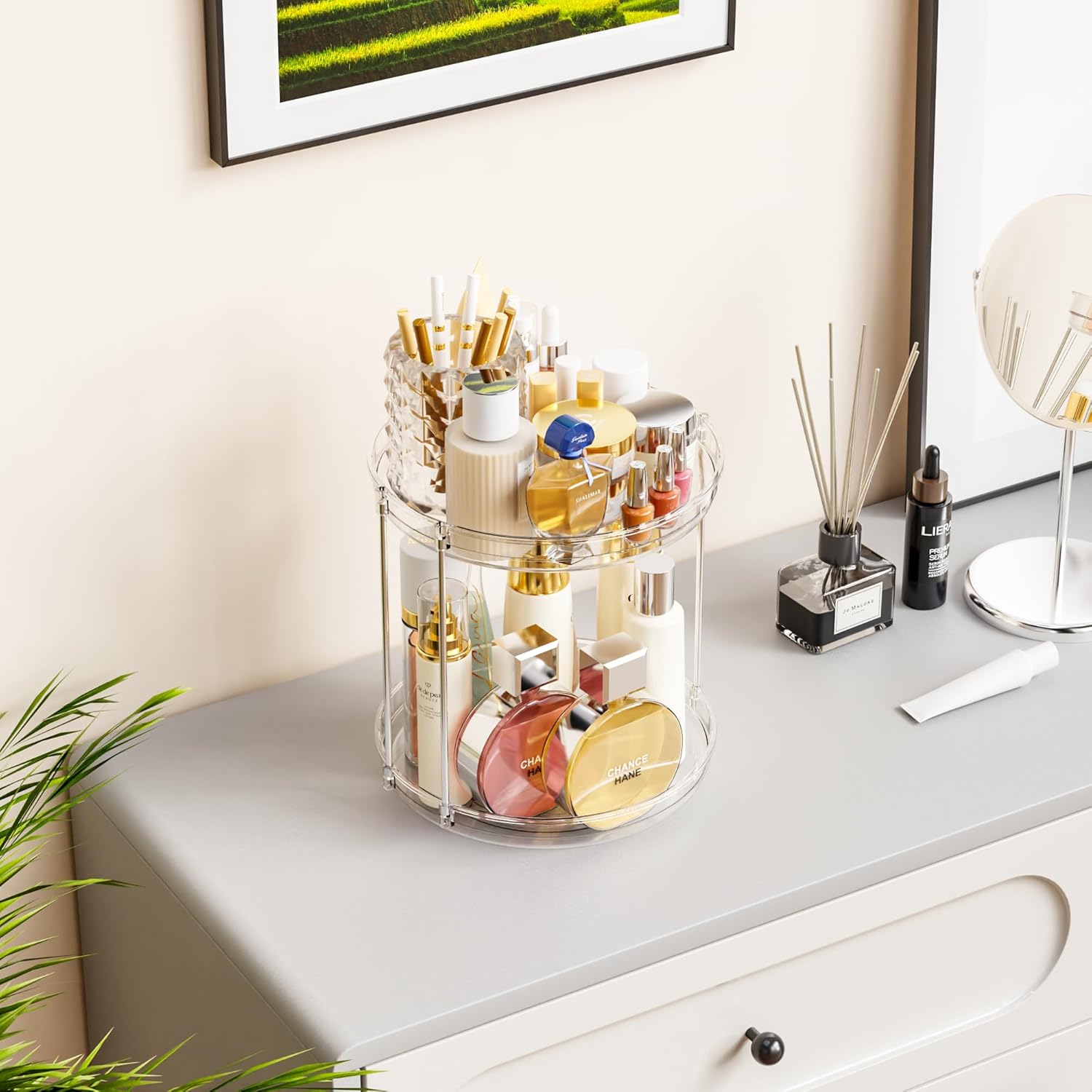 - 【Just a Simple Spin/Easily Accessible】 use our round makeup organizer, 360-degree rotating feature,everything is easily accessible and within arm's reach with just a simple spin,No need to rummage through messy drawers, and no longer struggle to find your favorite beauty products