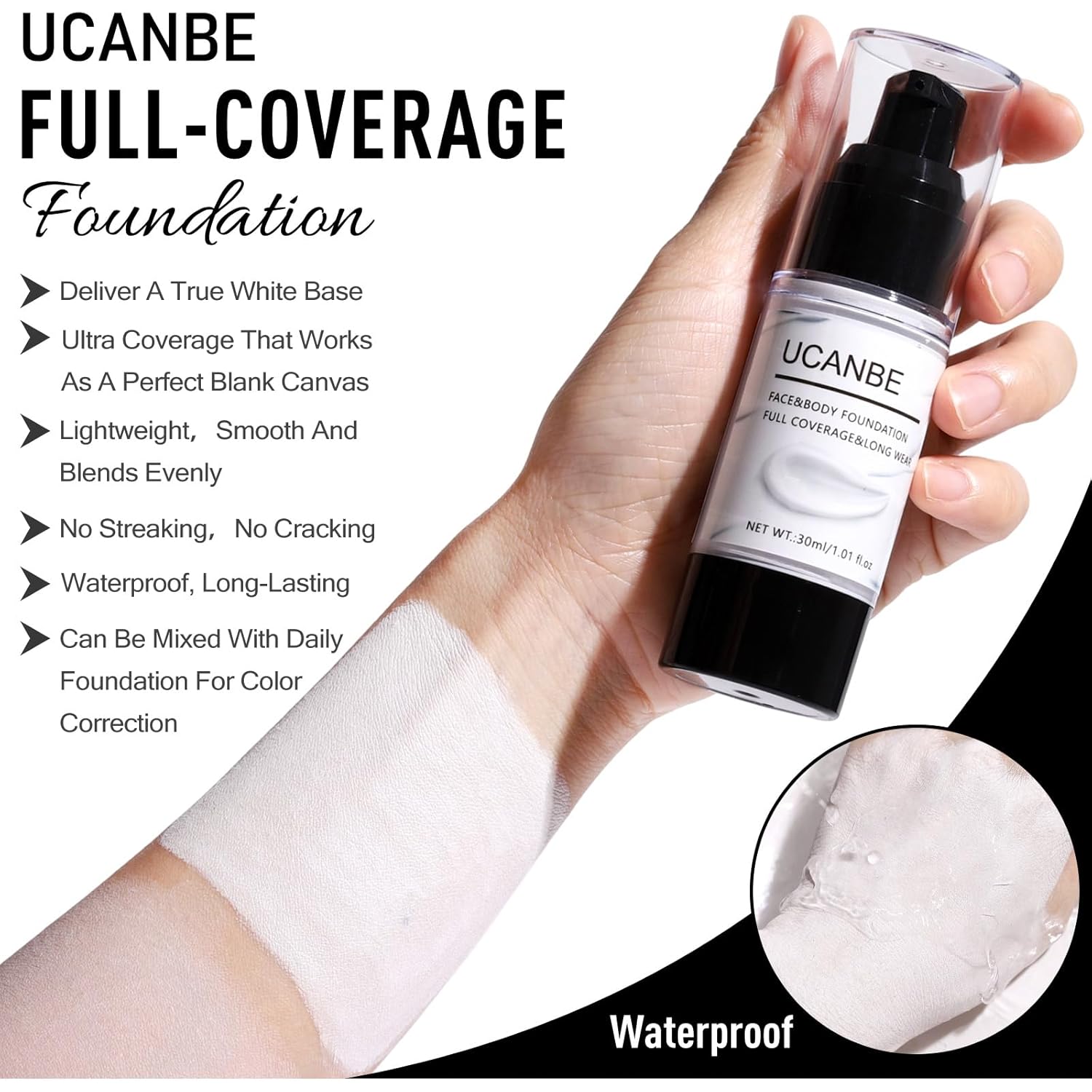 - EYESHADOW & FOUNDATION- This richly pigmented eyeshadow with matte, shimmer, and glitter shades in vivid lime, emerald, olive, forest green, and gold tones. Perfect for creating fantasy-inspired makeup looks like wicked witches, forest spirits, alien glam. This full-coverage foundation designed to deliver a true white base, offers smooth, opaque coverage that works as a perfect blank canvas for any Halloween makeup looks. Lightweight and blends evenly without streaking or cracking, provide costume-grade white skin effect.