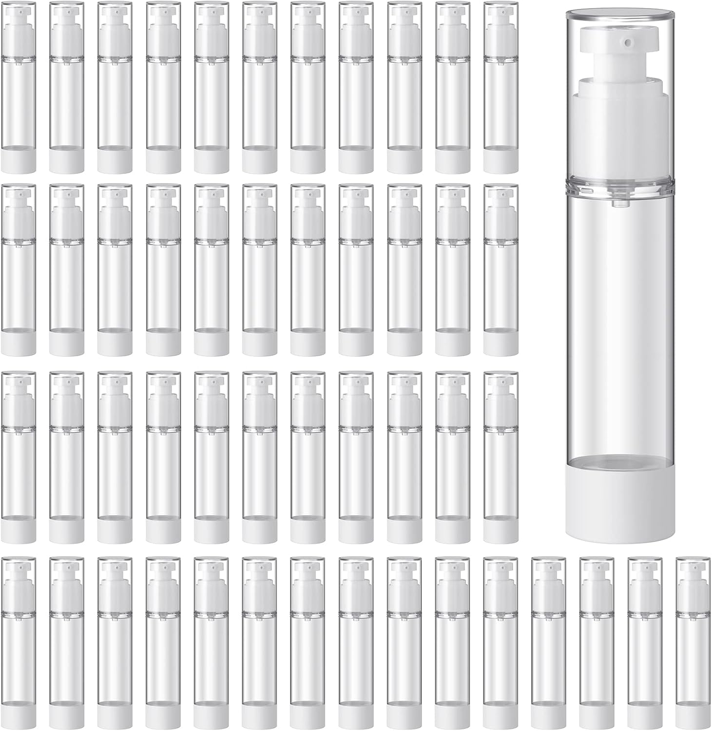 Sabary 60 Pcs Clear Airless Pump Bottles Refillable Cosmetic Travel Size Dispenser Vacuum Plastic Travel Bottles Empty Spray Pump Dispenser Liquid Toiletry Container(1.7 oz)