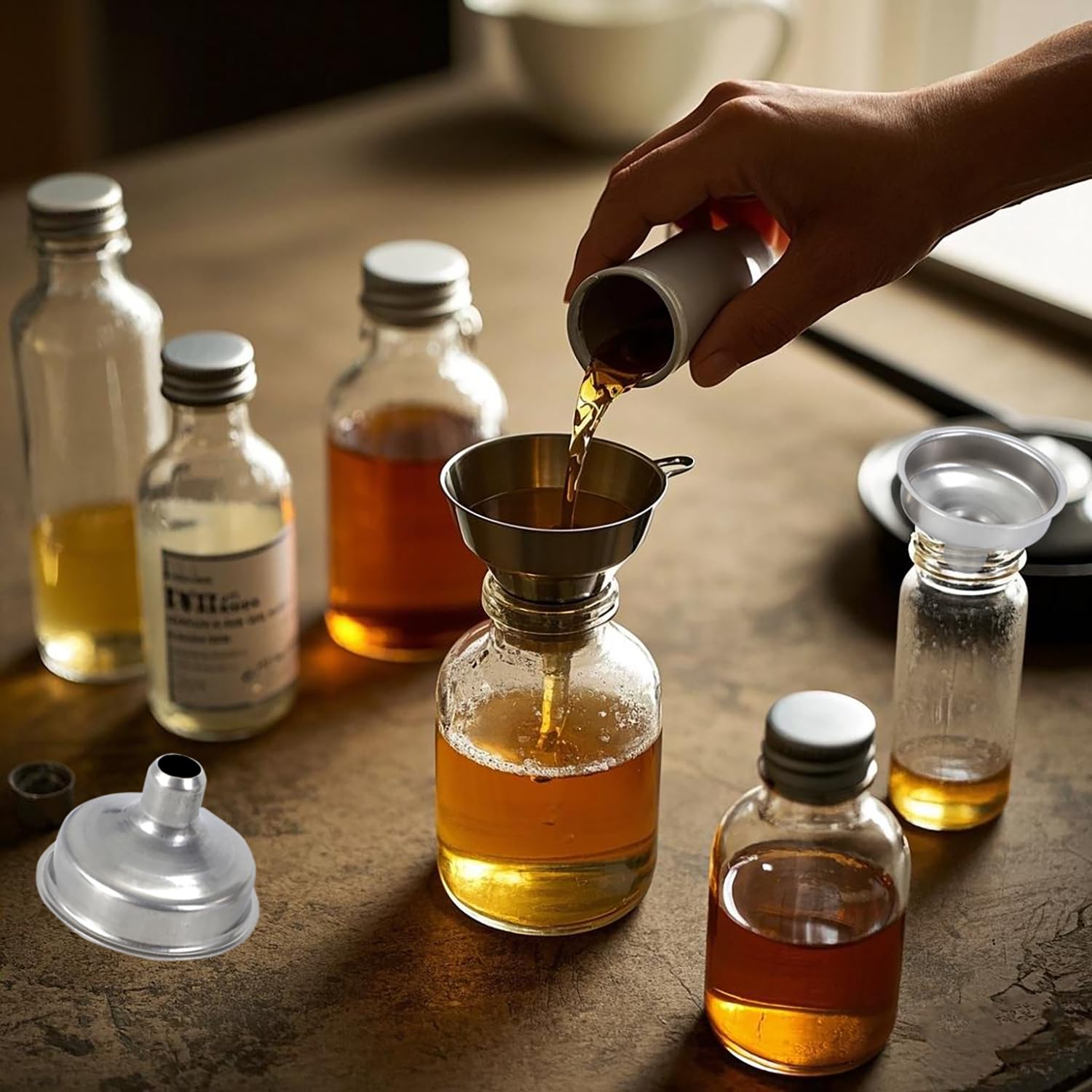 - MULTIPLE USES: Suitable for kitchen, school and lab use. This stainless steel mini funnel set is perfect for you to make oil mixtures, homemade perfumes or essential oils and more!