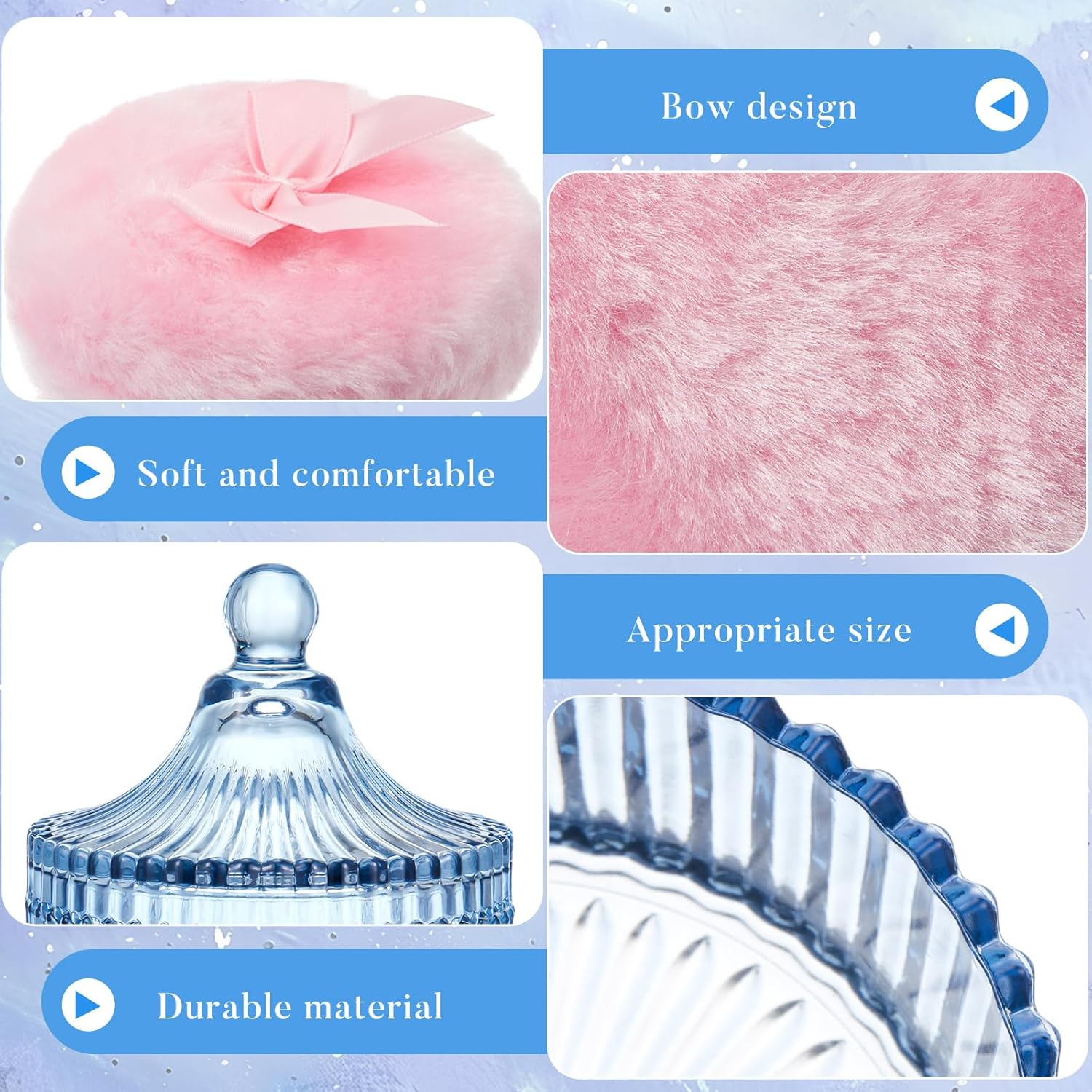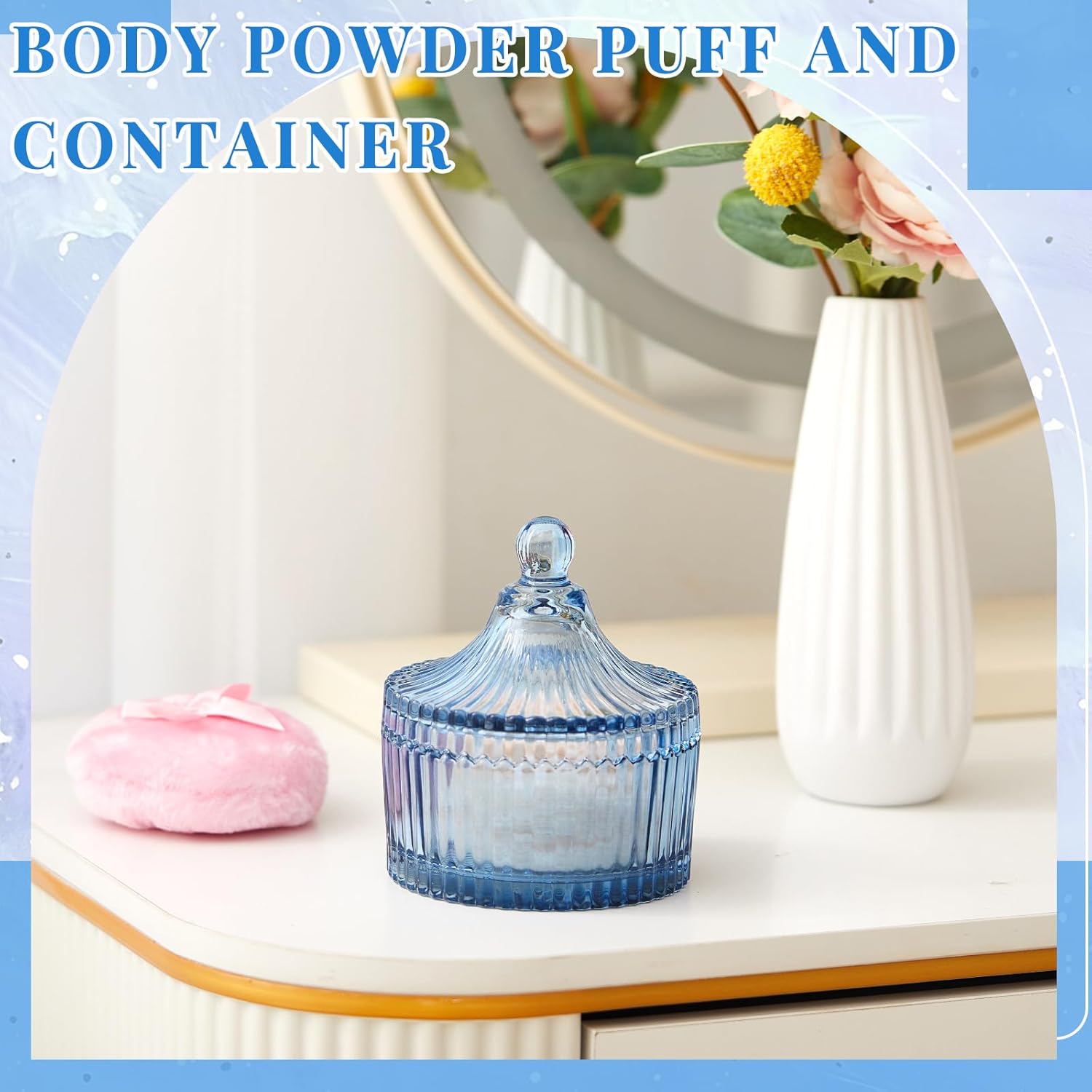 - Exquisite Design and Material: the set includes two powder puffs and a blue glass puff container; Our glass powder puff jars look beautiful, crystal glass material, powder puff is made of soft and skin-friendly plush; This vintage and classy style is designed to offer an irresistibly soft feeling on your skin while presenting an elegant look; Tips: this product is not a sealed can