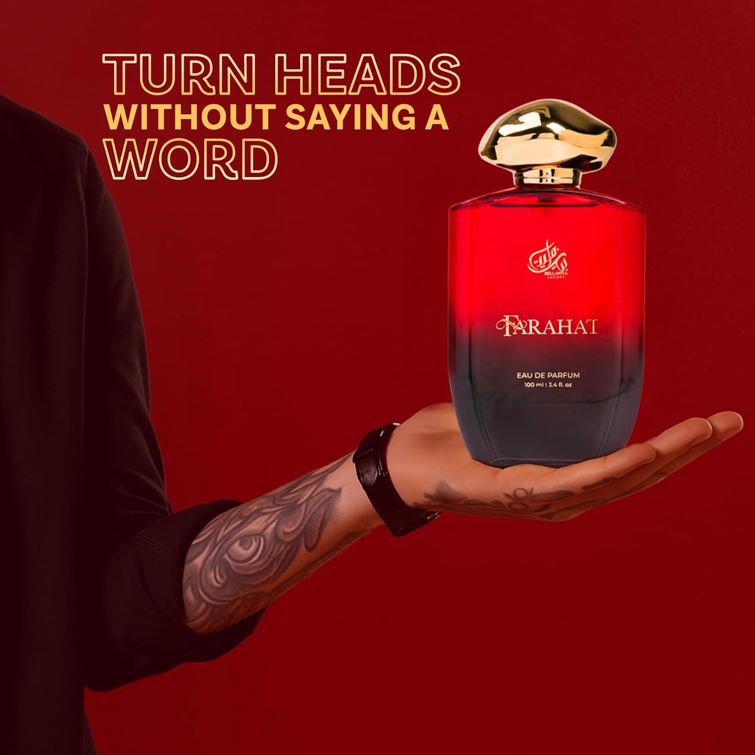 Bella Vita Luxury FARAHAT Unisex Fragrance | EDP Perfume for Men and Women | Amber Top Note | 100 ml pack | 3.4 Fl. Oz. | Woody and Amber notes | Gift for Men and Women | Eau de Parfum