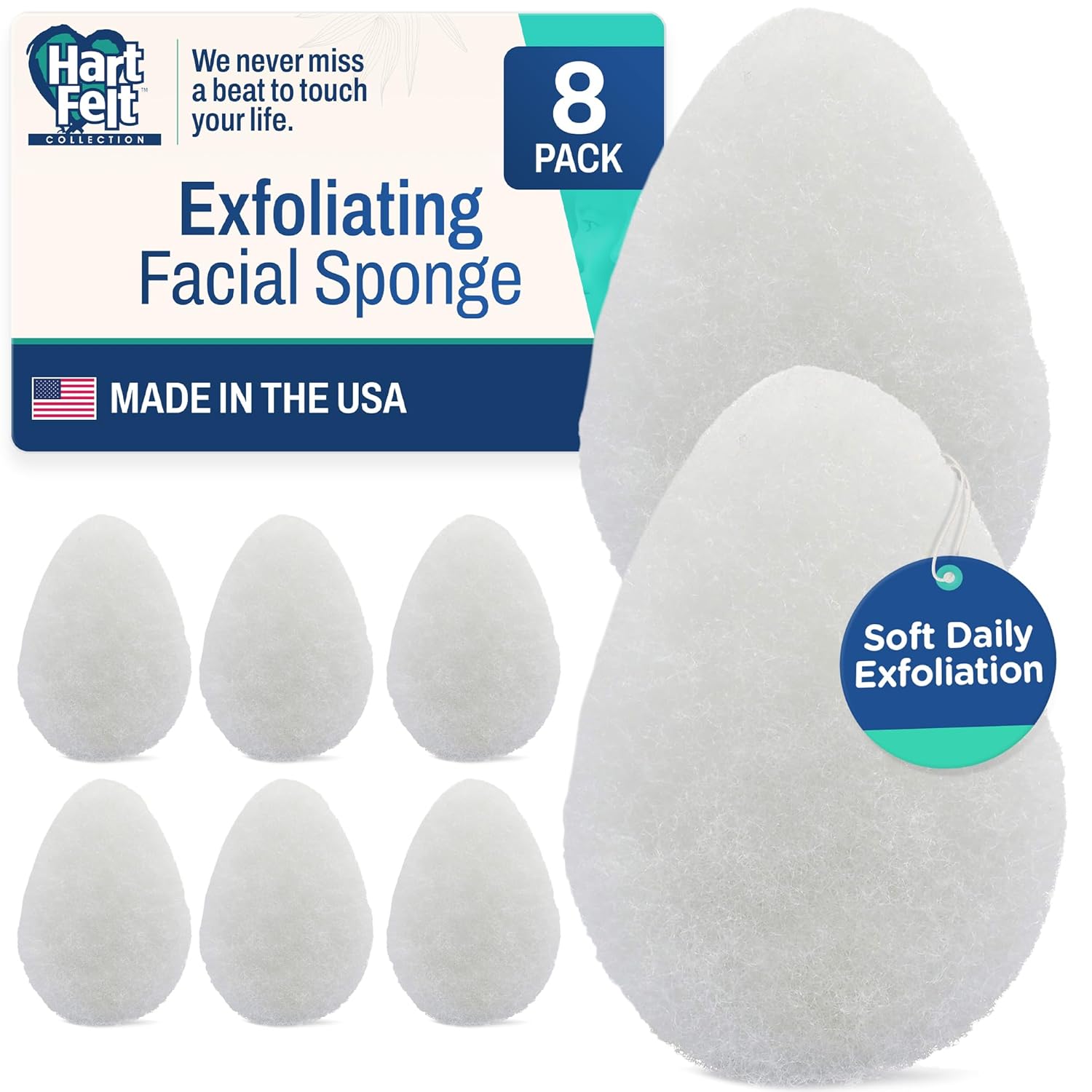 HartFelt 8ct Tear Drop Face Scrubber for Women | Reusable Facial Sponges for Daily Cleansing | Facial Exfoliating Pads for Removing Dead Skin, Dirt & Makeup | Made in USA