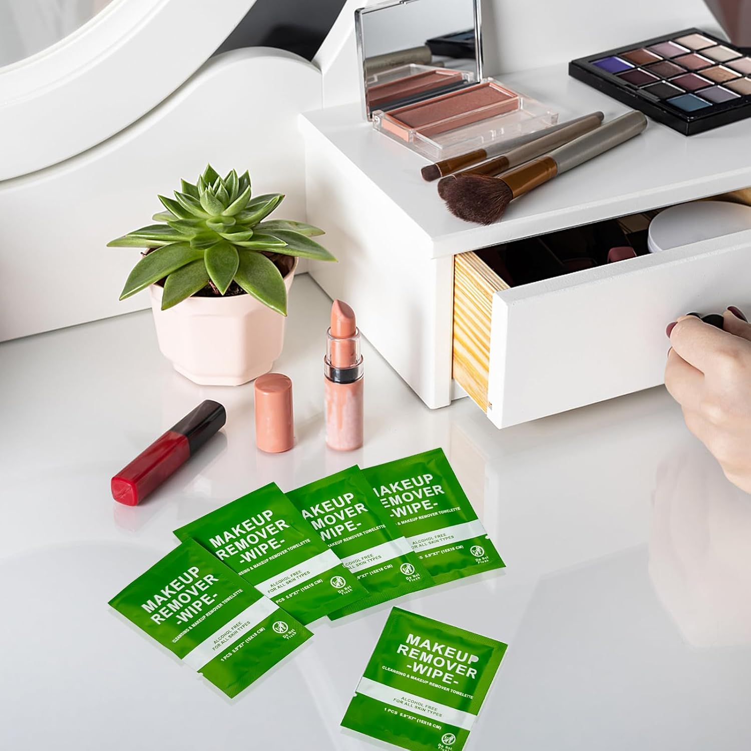 100 Count Makeup Remover Wipes Bulk Individually Wrapped, Travel Towelette Makeup Remover Individual Gentle Cleansing for Face Mascara Lipstick Remove Makeup