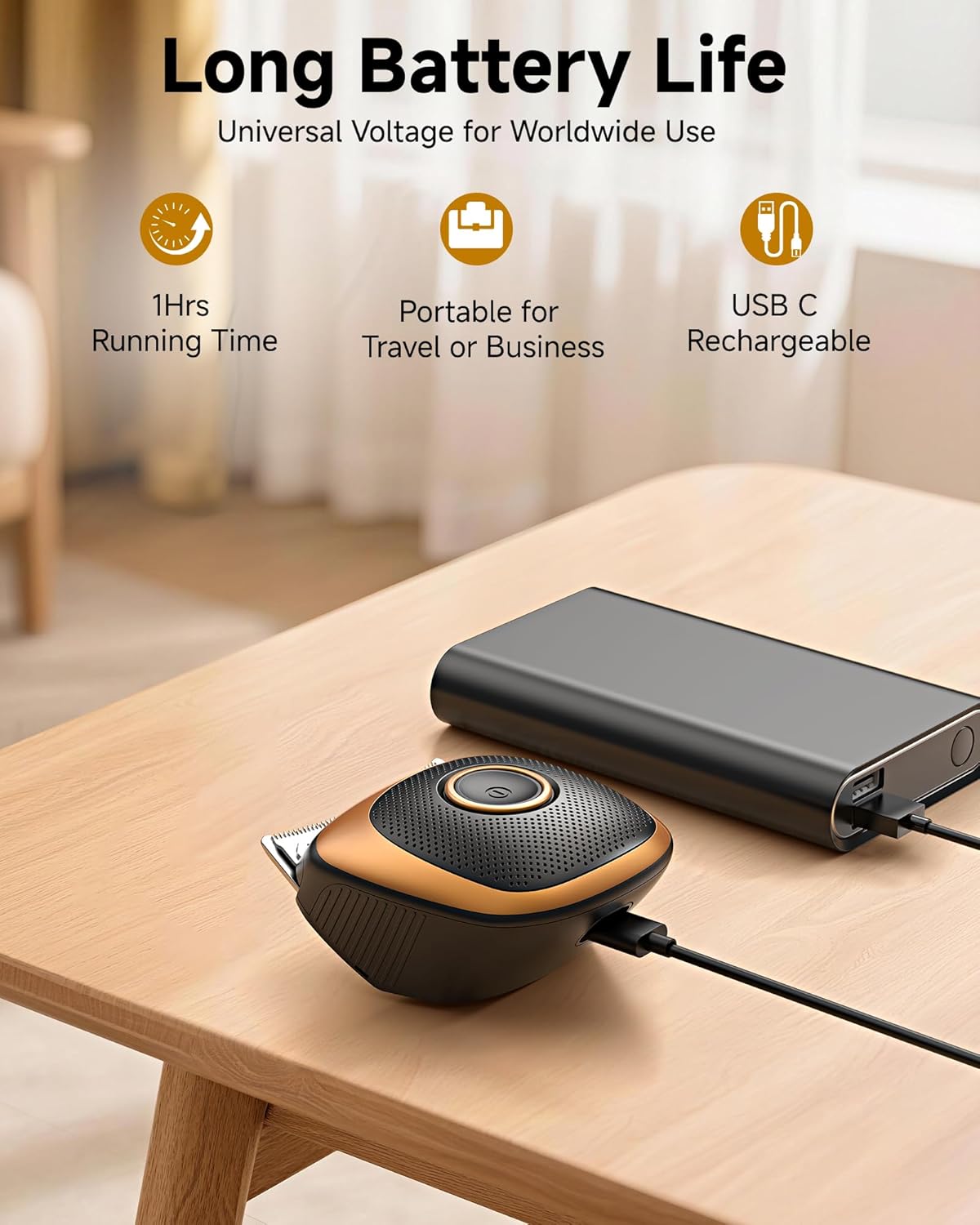 - Travel-Friendly & Long-Lasting – Mini size clipper is lightweight and easy to carry, perfect for home, business trips, or vacations. Features USB-C rechargeable design with universal voltage support for worldwide use. Delivers up to 1 hour of continuous running time on a single charge, making it your reliable grooming partner wherever you go.