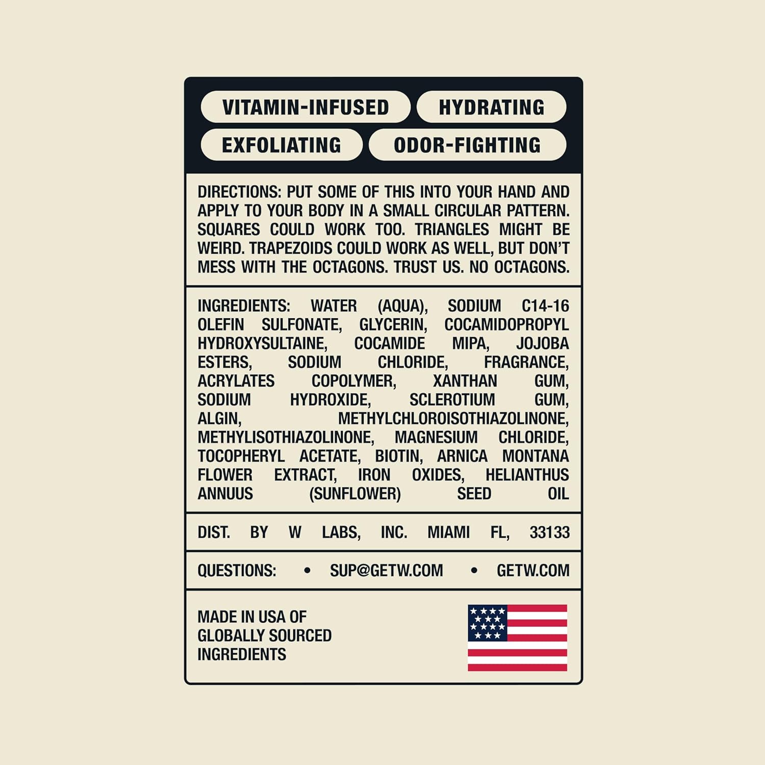 W By Jake Paul Exfoliating Body Wash for Men, Vitamin-Infused, Hydrating Shower Gel, Deep Woods, 18 fl oz (Pack of 2)