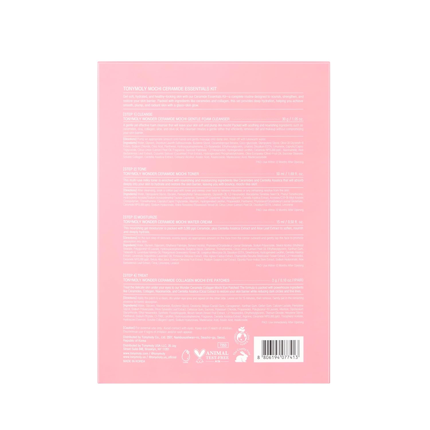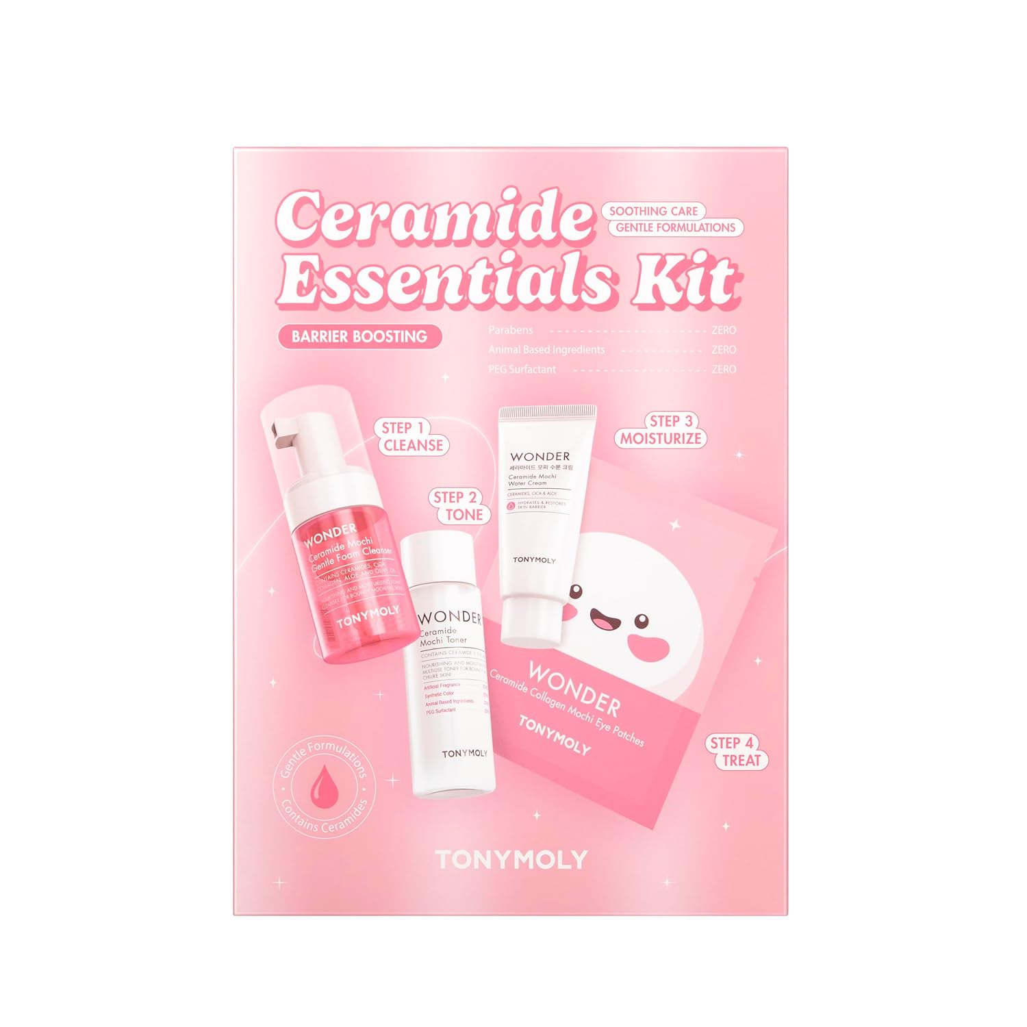 TONYMOLY Wonder Ceramide Mochi Essentials 4-Piece Skincare Set – Travel Toner, Cleanser, Cream & Eye Patches, Hydrating Korean Skincare Kit