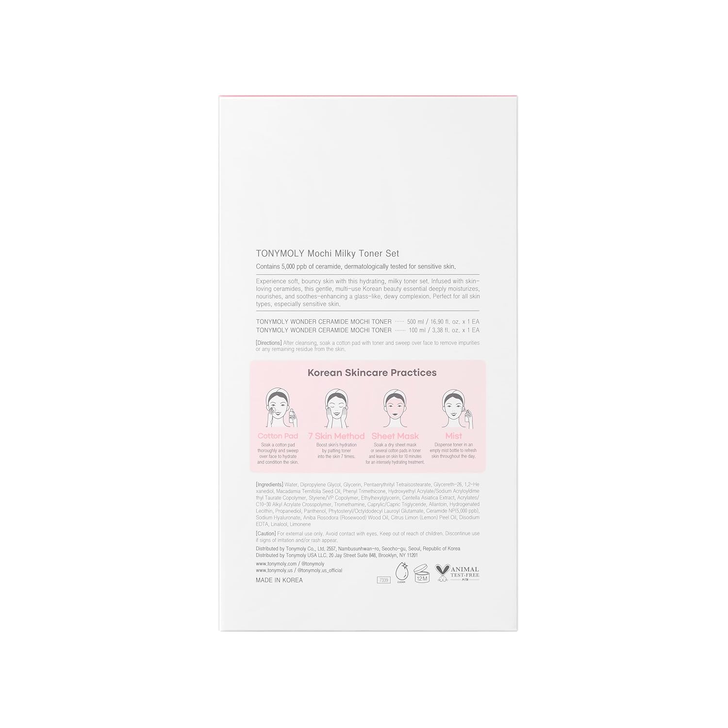 TONYMOLY Mochi Milky Toner Set – Hydrating Korean Toner with Ceramide, Cica, Panthenol & Hyaluronic Acid – Strengthens Skin Barrier, Soothes & Moisturizes – 500ml + 100ml Travel Size Duo