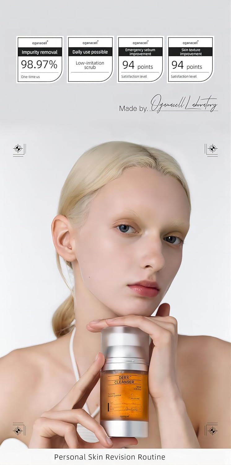 Oganacell DERX Revitalizing Facial Cleanser with Peptides & Walnut Microbeads - Gentle Exfoliating Gel To Foam for all Skin, Korean Clinic-Developed (120ml/4.05 fl.oz.)